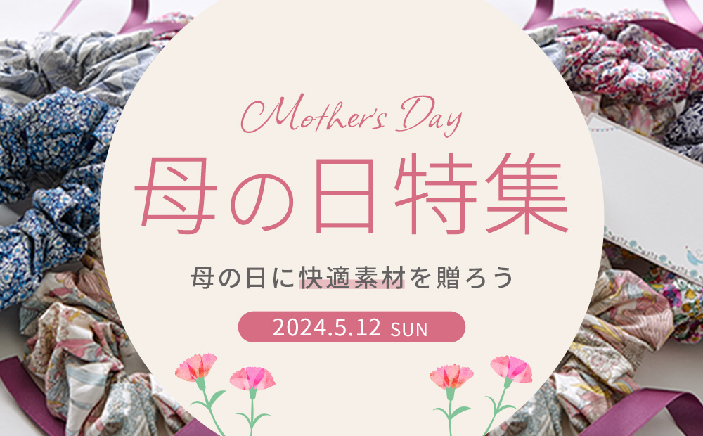 大切なお母さんに、快適な上質素材のアイテムと、上品で華やぐリバティシュシュを贈ってみませんか?