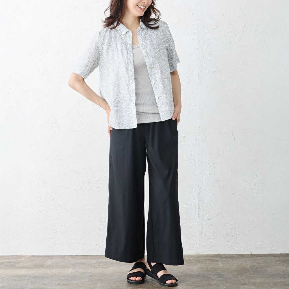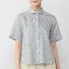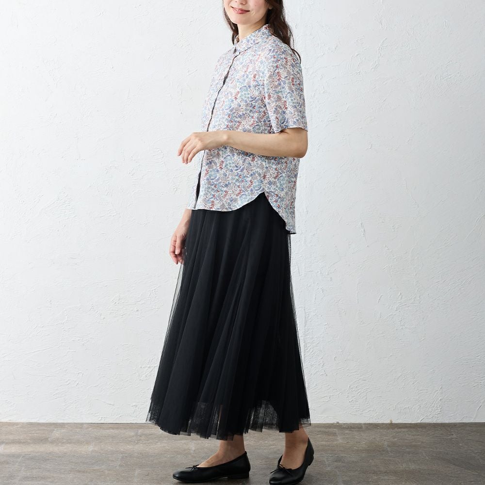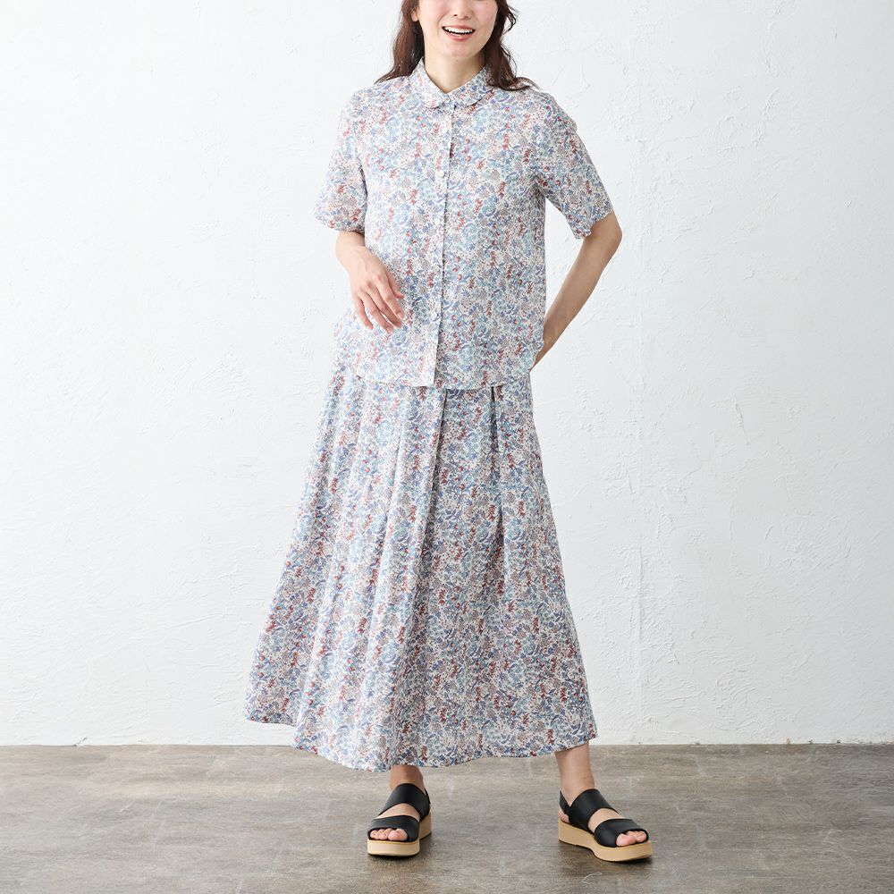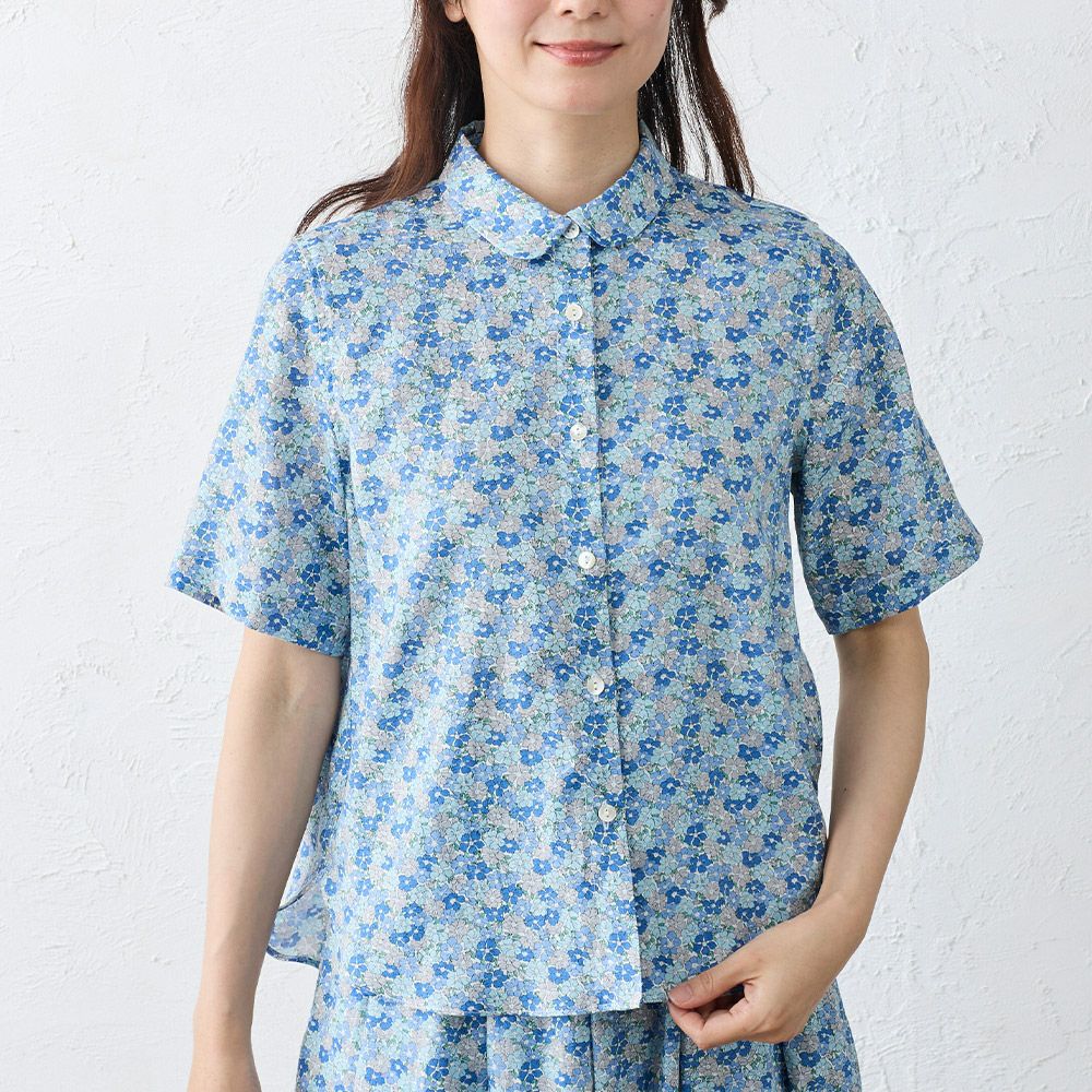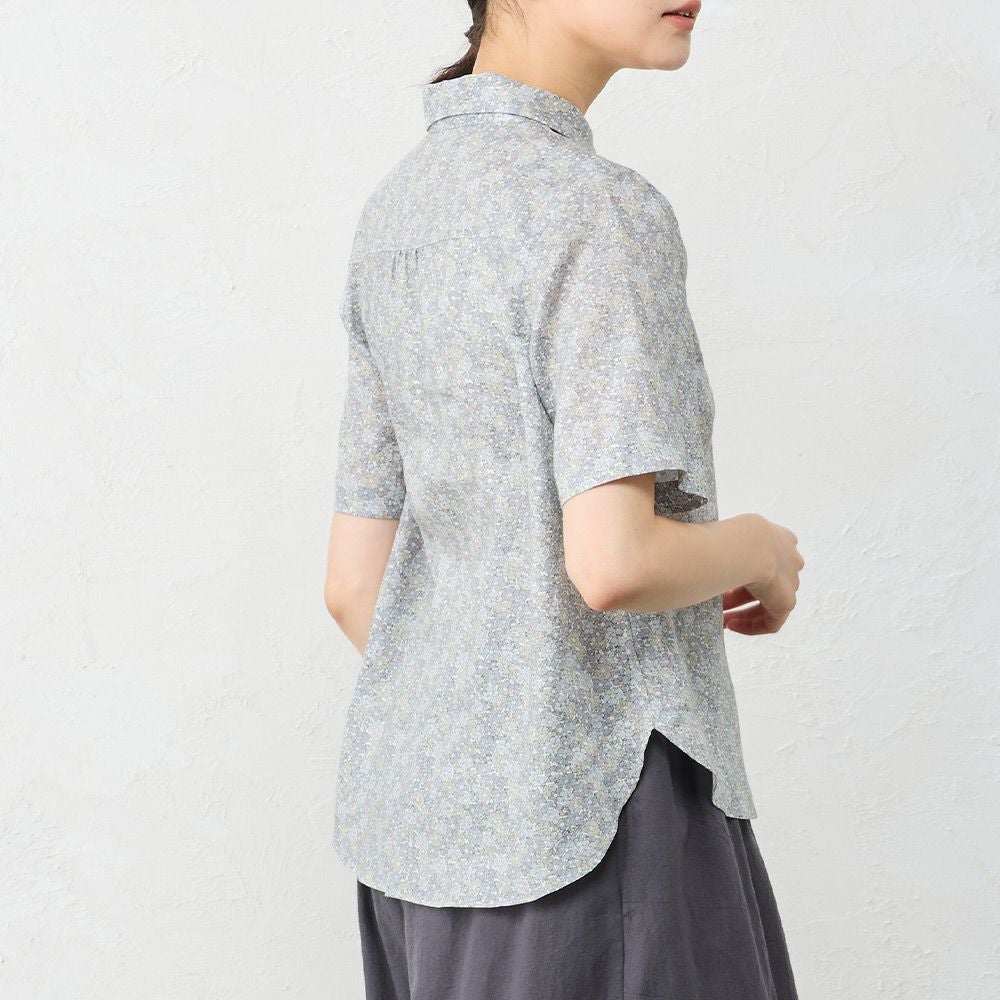 ベルギーなどフランダース地方原産のリネンを使い、リバティプリントで仕立てた半袖ブラウス。