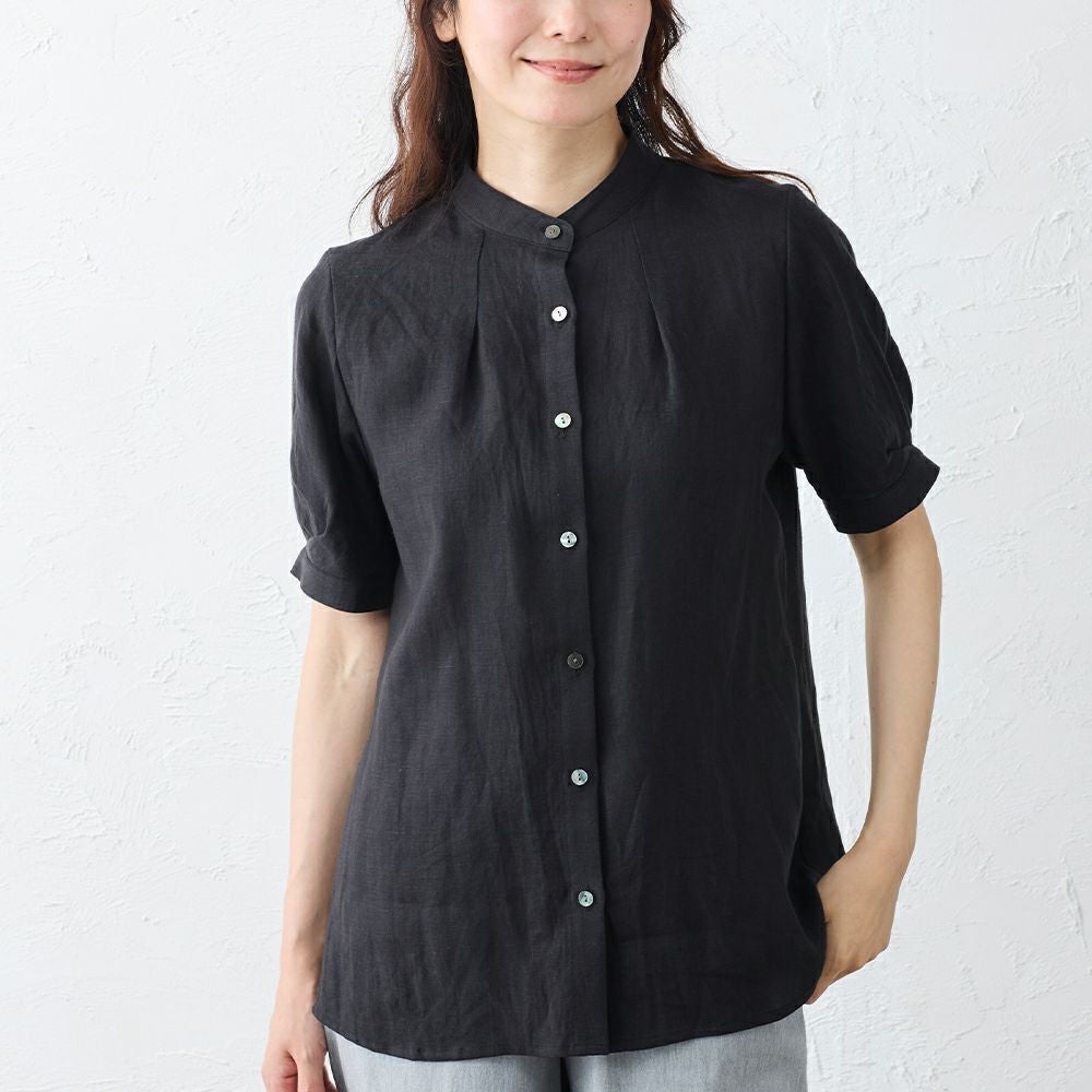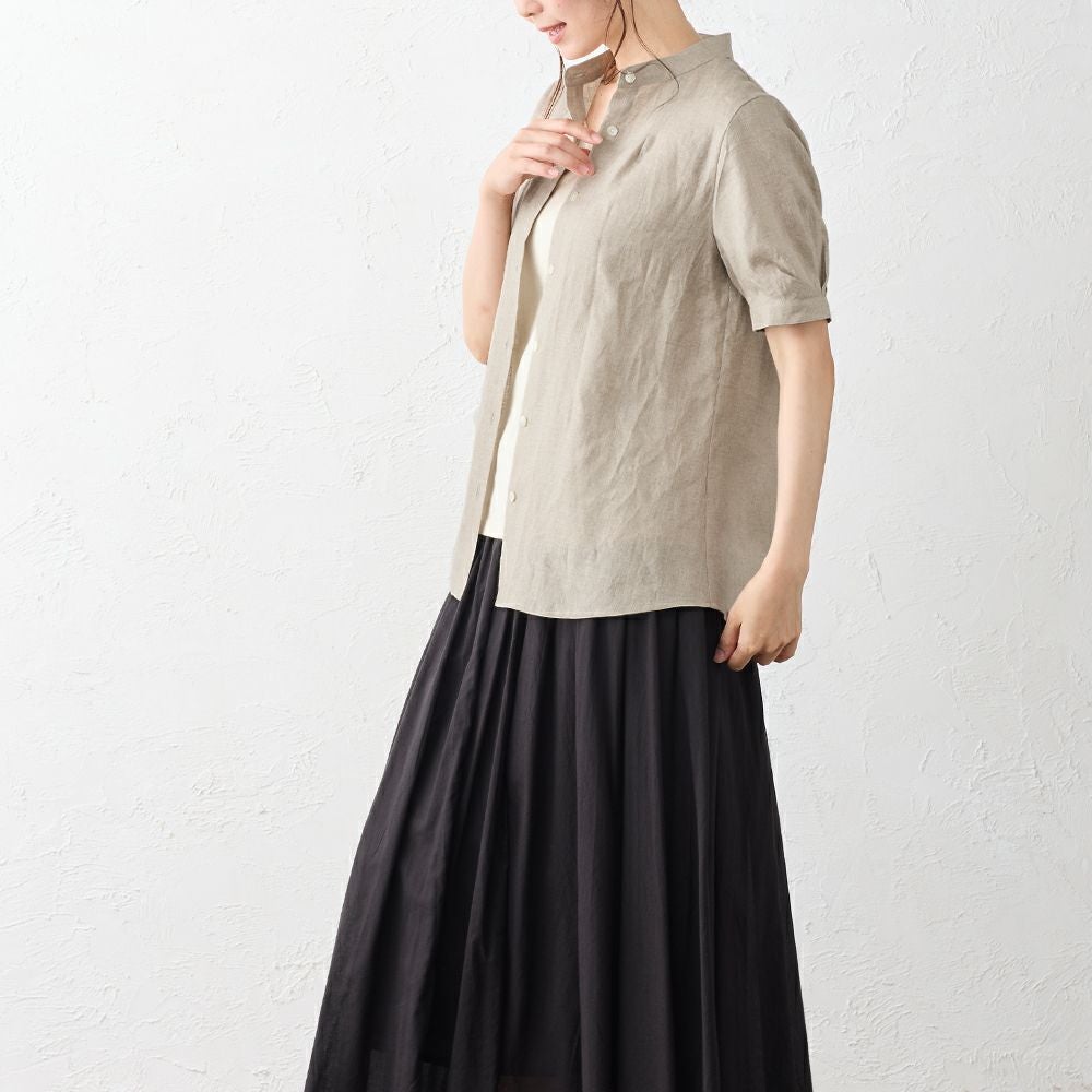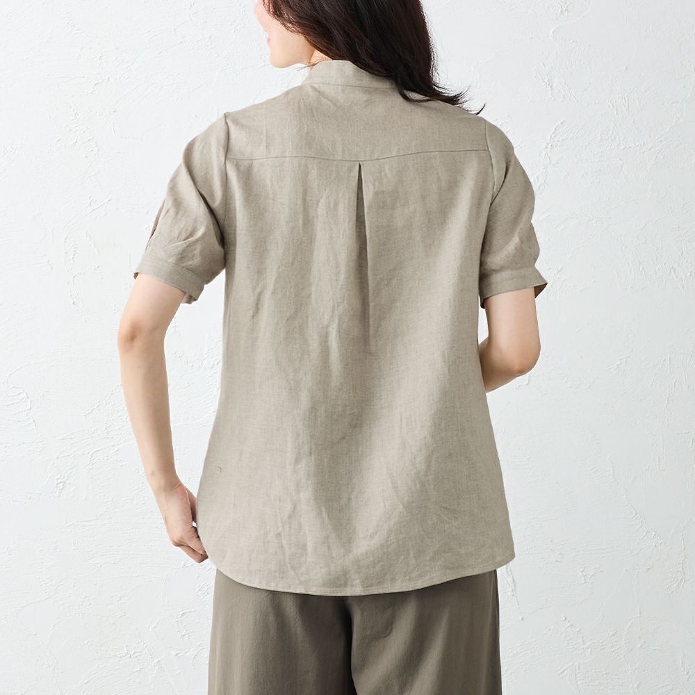 リネンならではの通気性と、着るほどに馴染むやさしい風合いが魅力の半袖ブラウス。 自然な光沢とシャリ感のあるリネンは、通気性・吸湿性に優れ、暑い季節もさらりと快適です。 ストンと落ちるラインで体型を問わず着こなしやすく、リラックス感のある着心地になっています。
