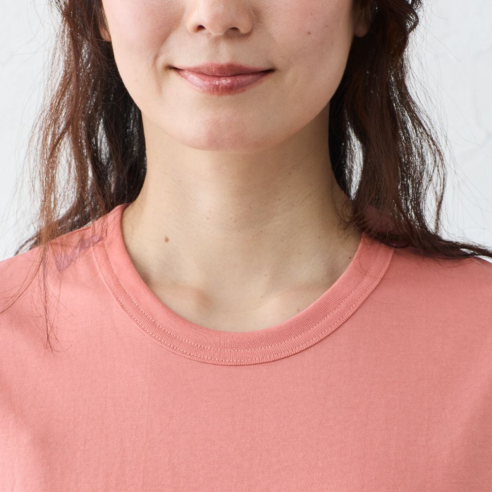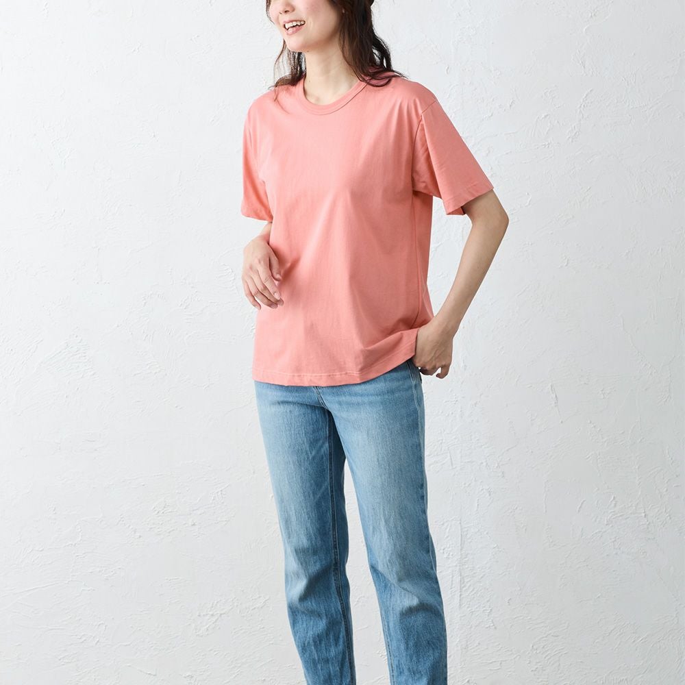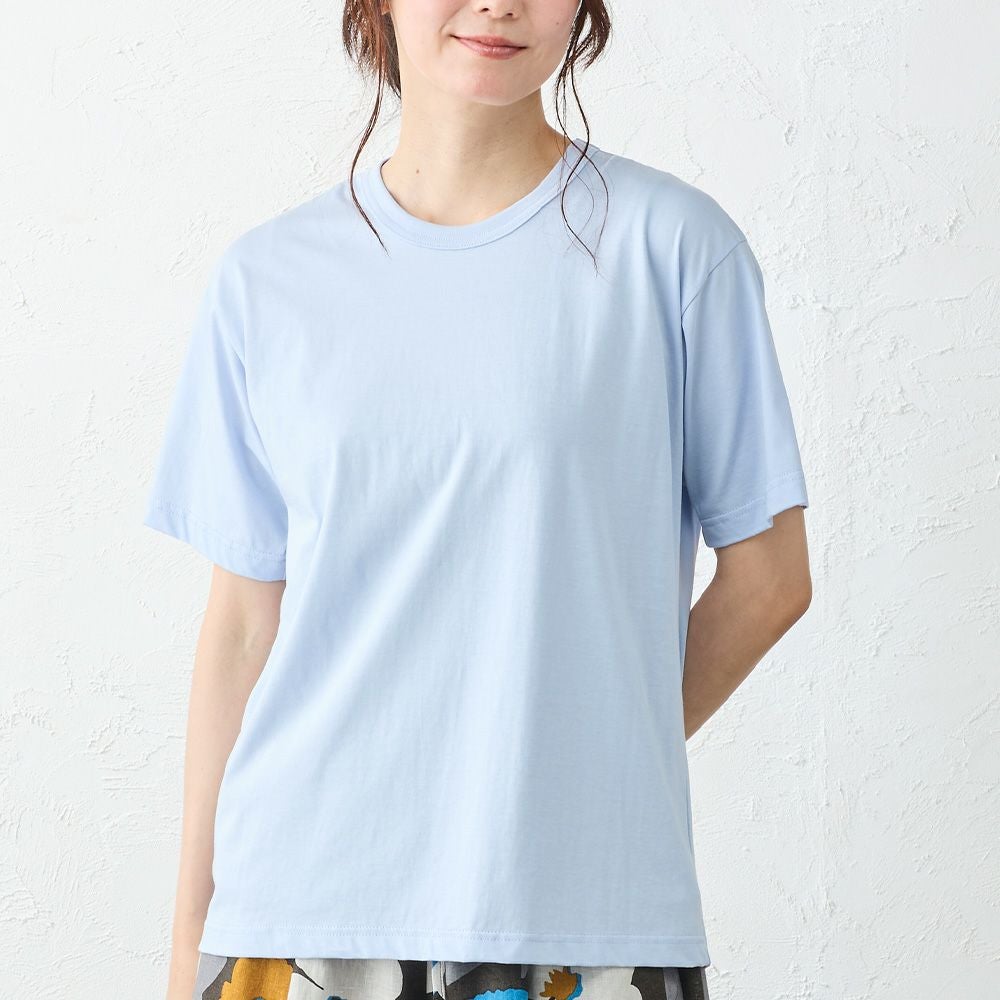 Tシャツの気軽さはそのままに、素材の艶と落ち感で上品さをプラス。 一枚で決まるシルエットと、控えめなネックラインが大人の装いにぴったり。 カジュアルにもきれいめにも馴染む、品のあるTシャツです。