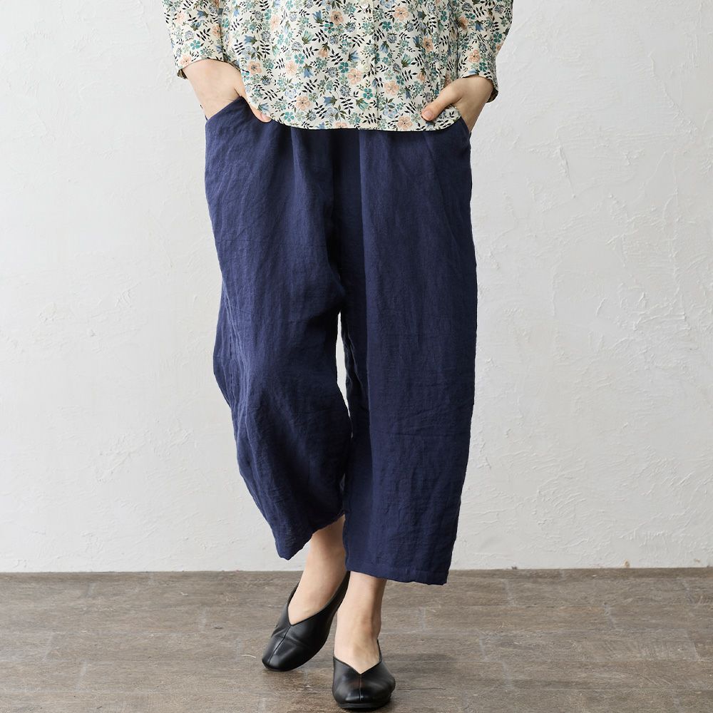 独特な雰囲気で深みのあるリネン素材。古くからの伝統技法「東炊き」で染められた生地は小さな釜で炊かれ、独特なとろみのある柔らかな素材に。上品な大人のカジュルコーデにピッタリのバルーンパンツ。穿くだけでおしゃれ見えするアイテムです。