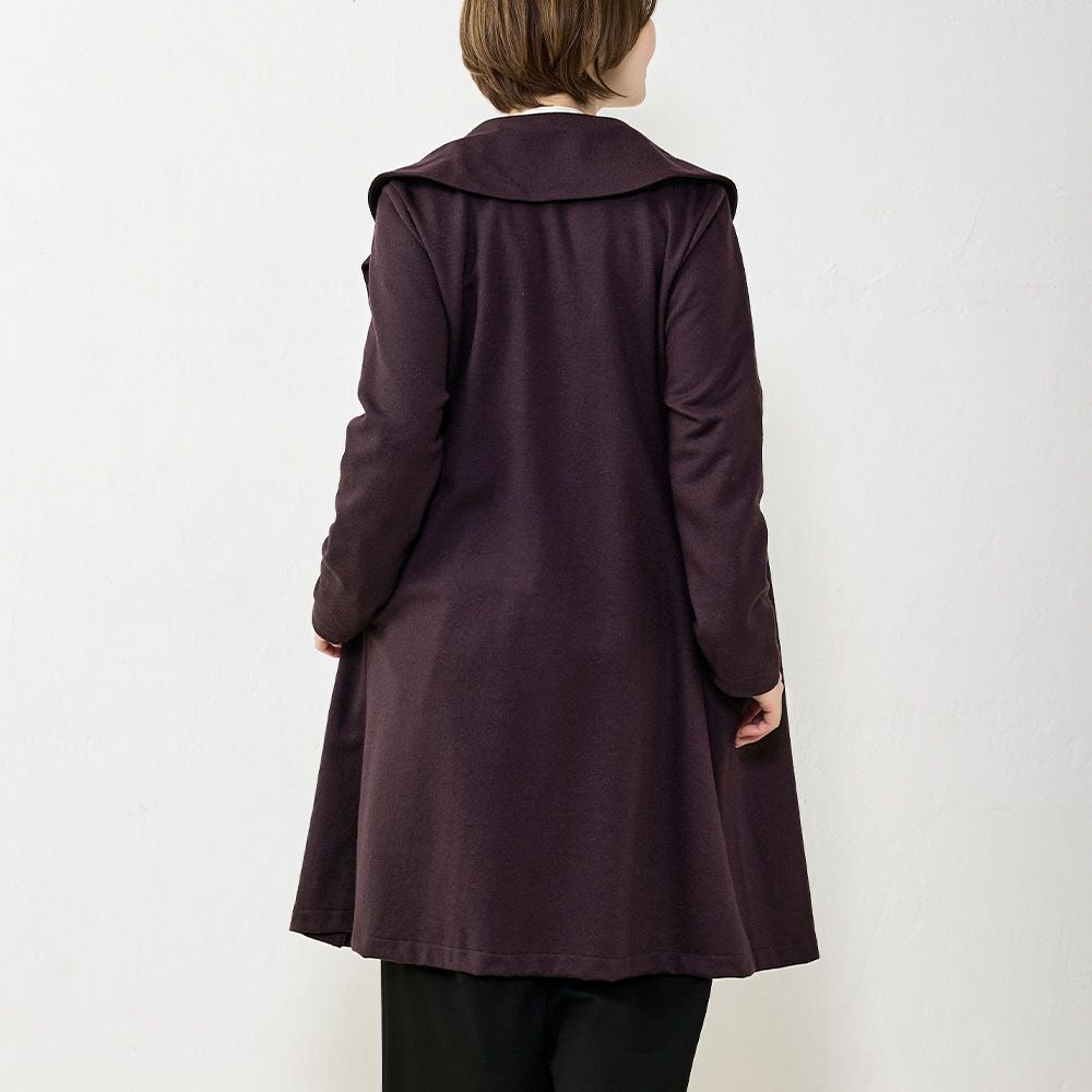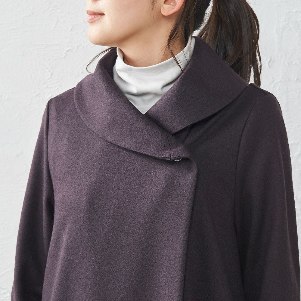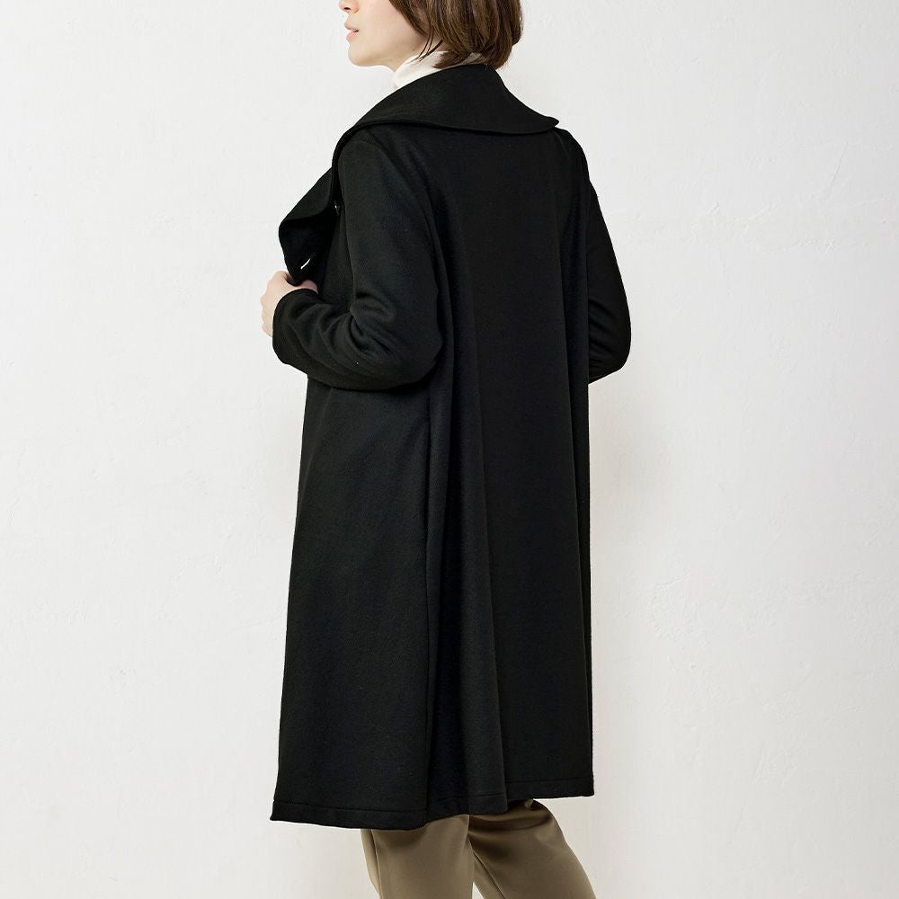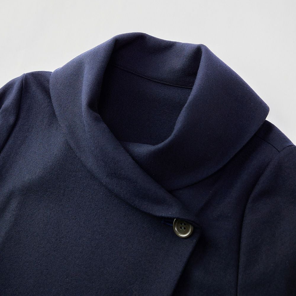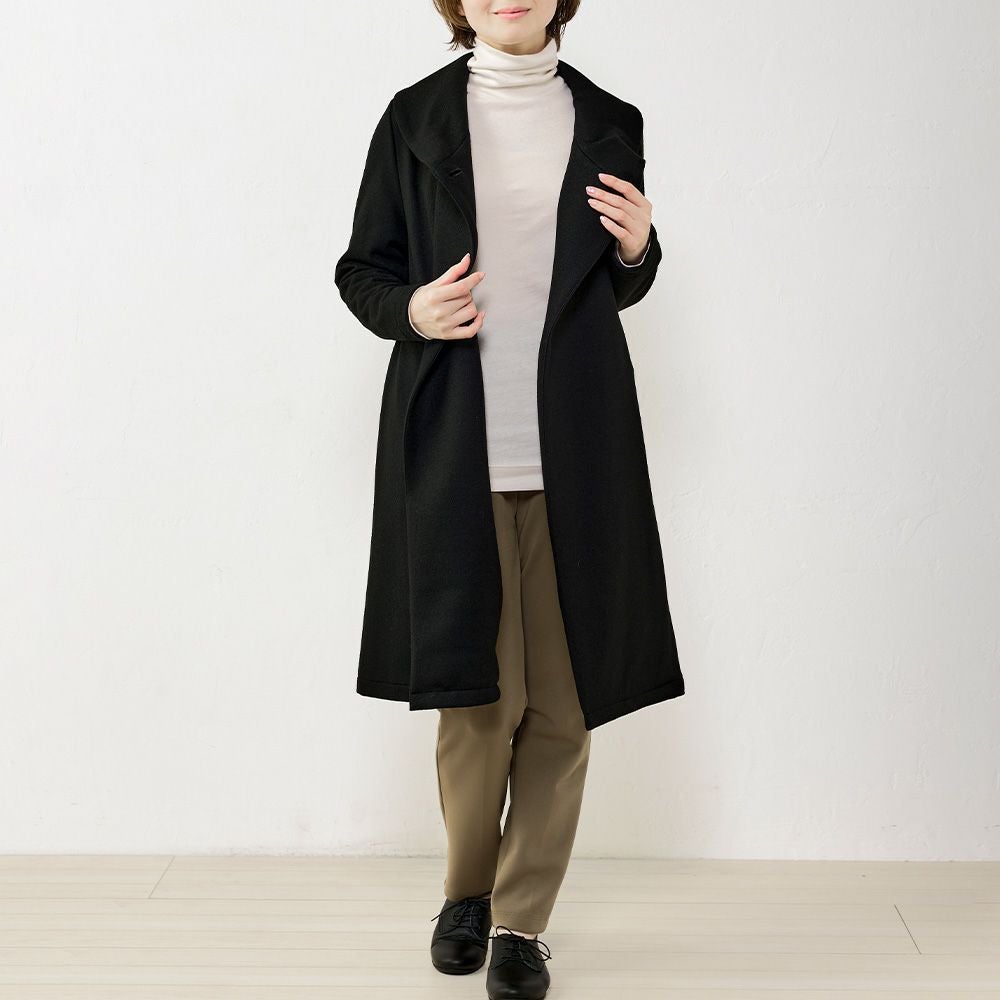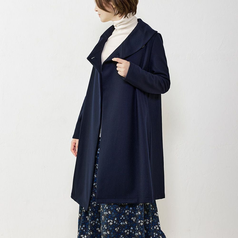 エレガントにも、カジュアルにも着こなせるシンプルなのに表情豊かなコート。前を閉じれば上品に。フォーマルな場所や、お仕事でもご着用頂けます。コーディガンのようにさらっと羽織ってこなれた着こなしも。軽いのにしっかり暖かい、尾州のメリノウールを贅沢に使用しています。メリノウールの機能性を継承しつつ、少し厚みを持たせて柔らかすぎず硬すぎず程よいドレープでお洒落をお楽しみ下さい