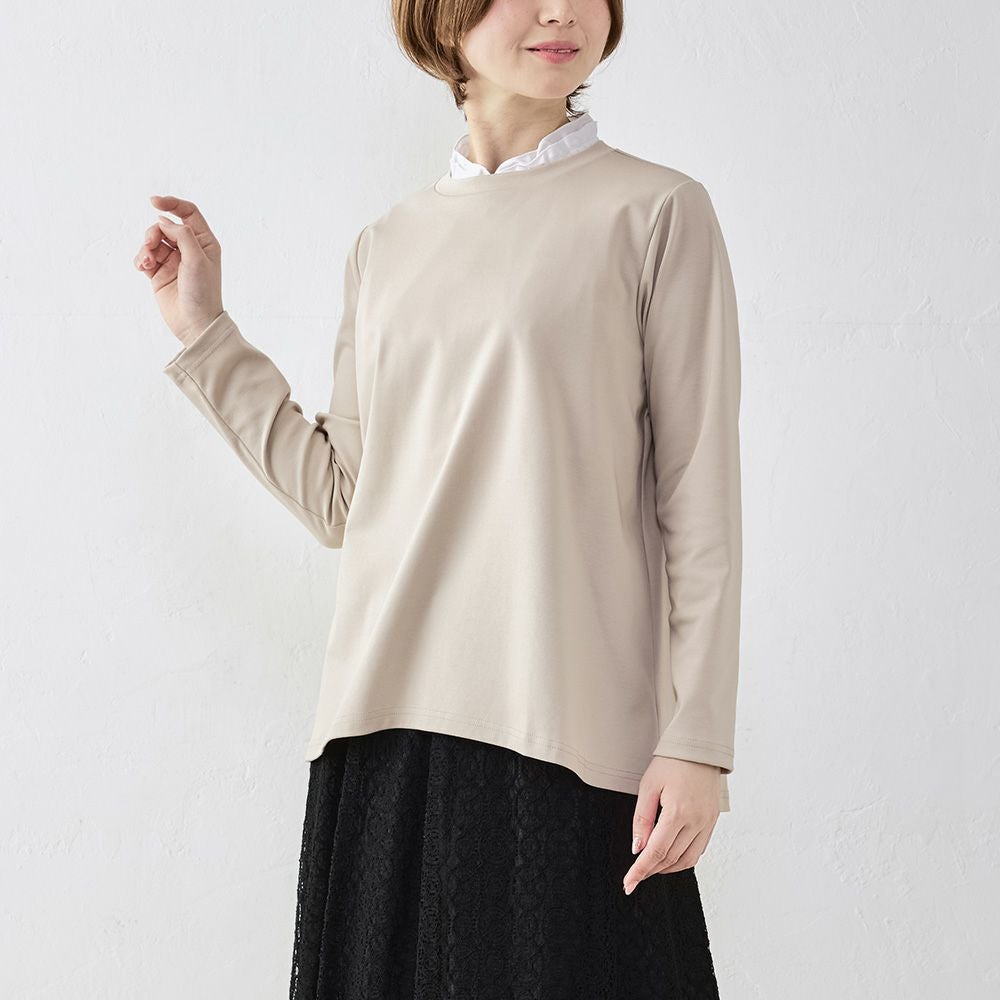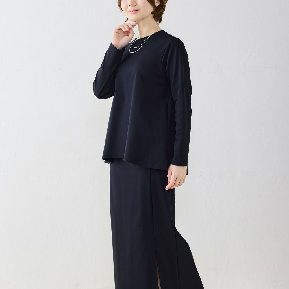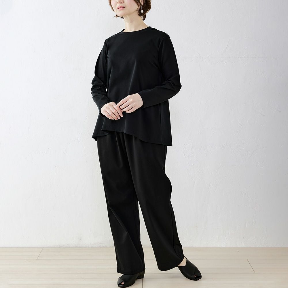 サラッとした感触と豊かなドレープ感・上品な光沢で綿100%とは思えない上質感を生み出す着心地の良い強撚コットンを使用したブラウス品よくまとまるのでカジュアル~キレイめまで着まわせます。 同素材のワイドパンツやスカートと合わせてセットアップの着用も◎