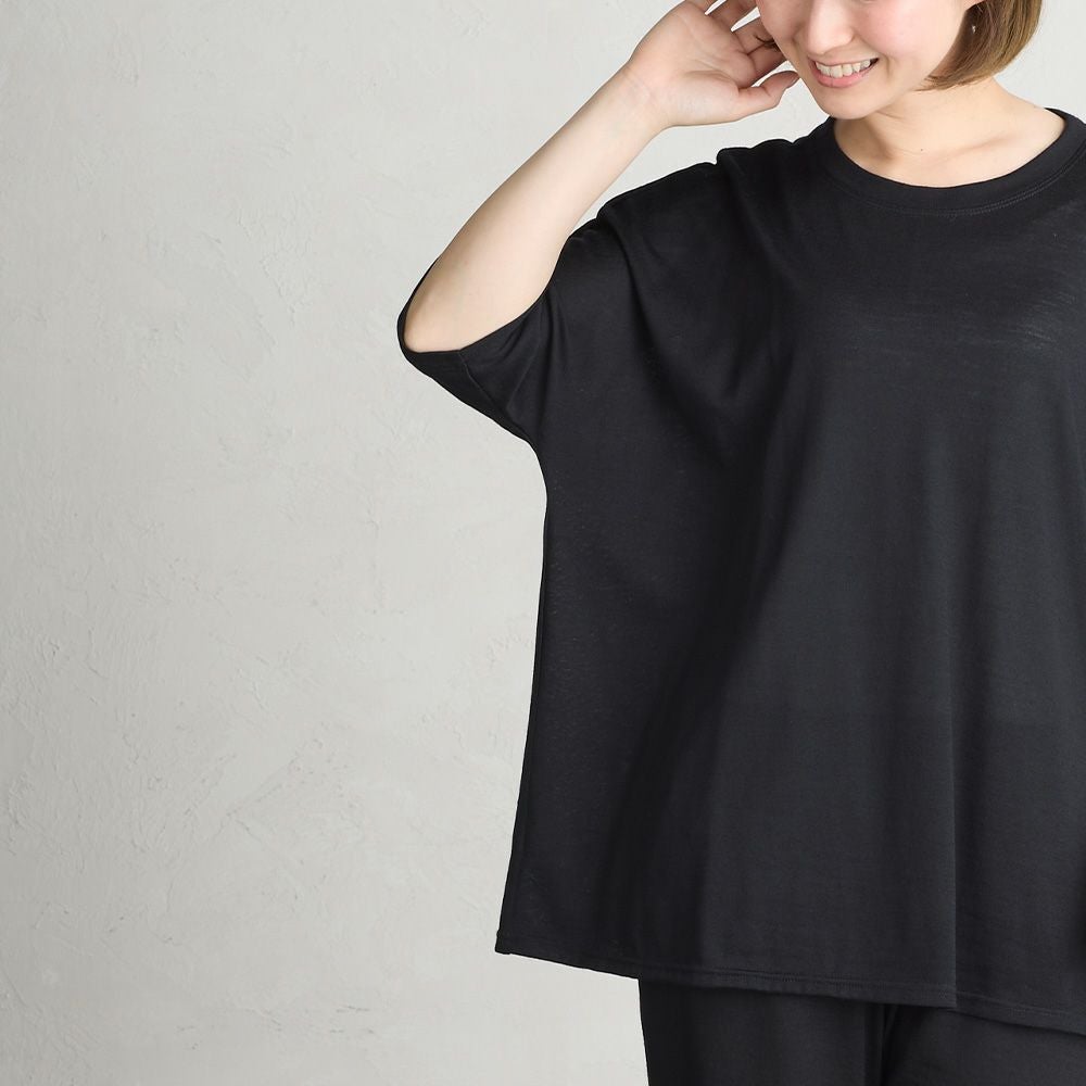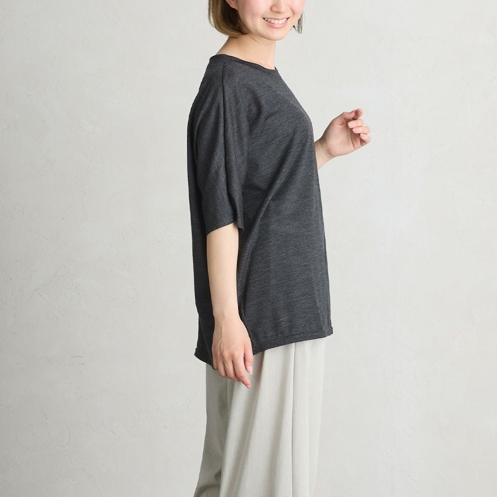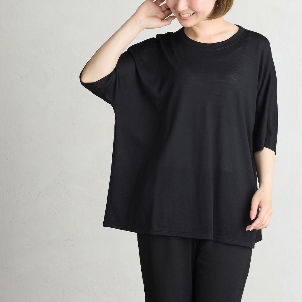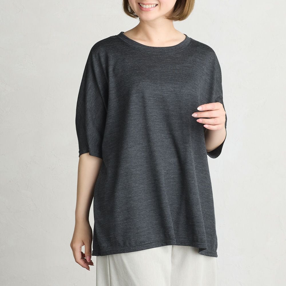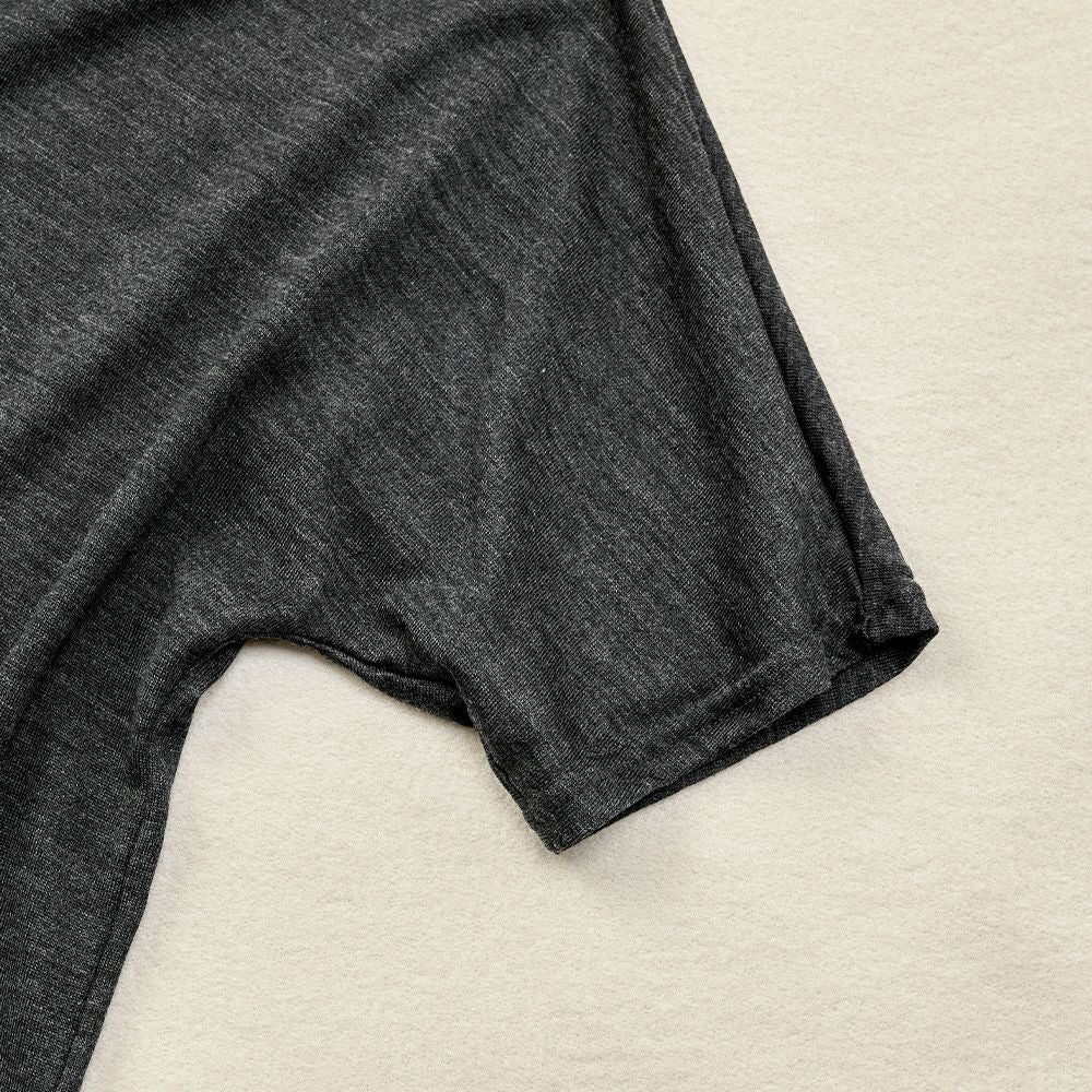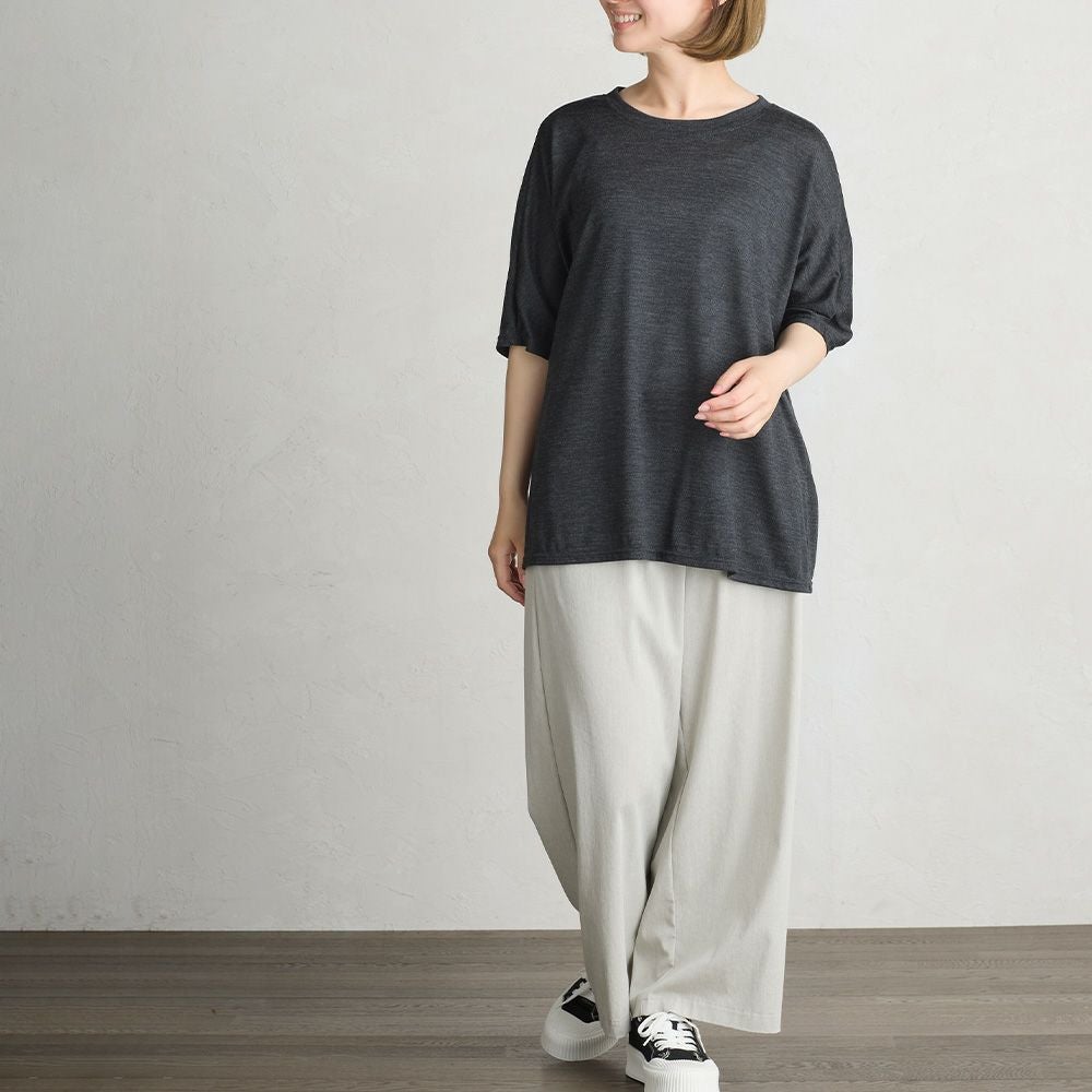 メリノウールの中でもより繊細な【マウントブレスウール】を使用。細く繊細なsuper'sのウールはチクチク感を感じず快適な着心地です。体型を拾わないゆったりのオーバーサイズカットソー