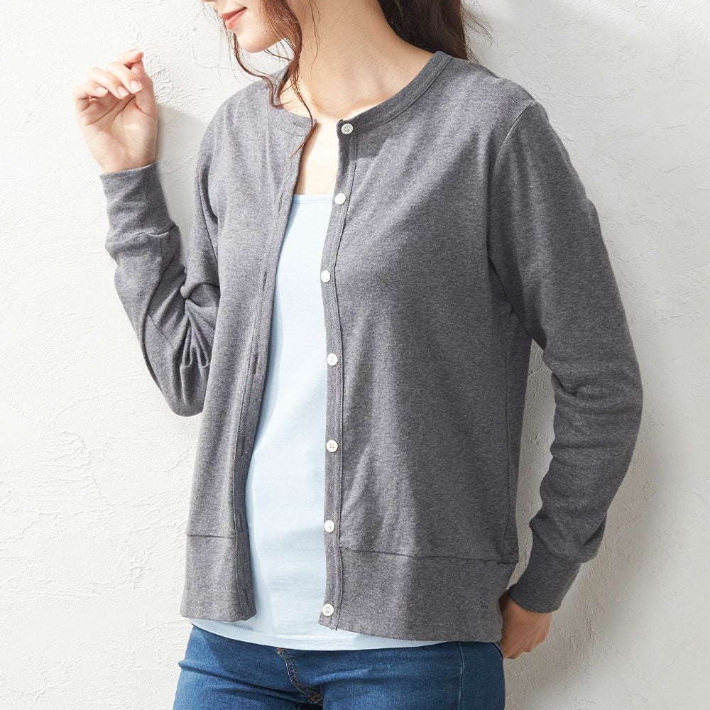 柔らかく伸縮性に優れたオーガニックコットンを使用したカーディガン。 肌触りがとても柔らかく、肌の弱い方や敏感肌の方にもおススメです。 ベーシックなカーディガンは秋口や春先の寒さ対策にはもちろん、夏の冷房対策や日焼け対策にも最適です。