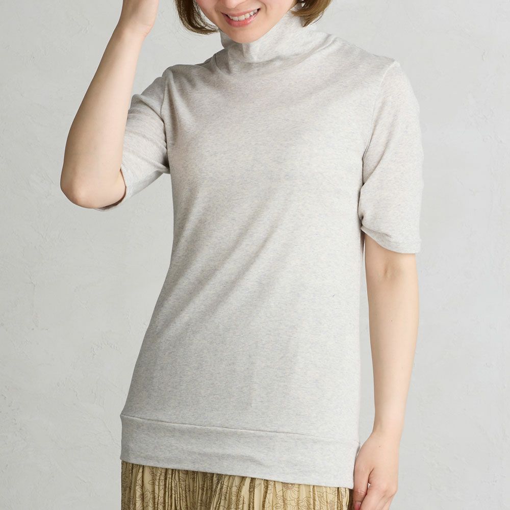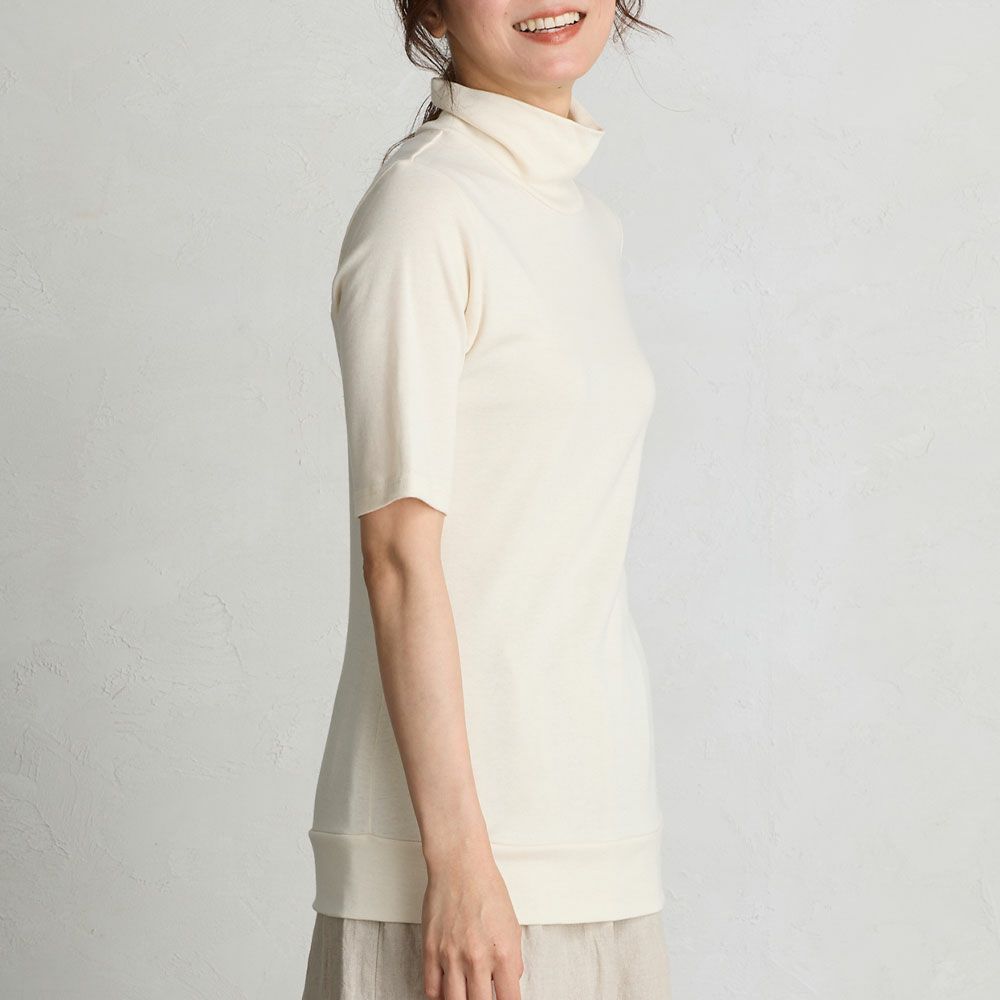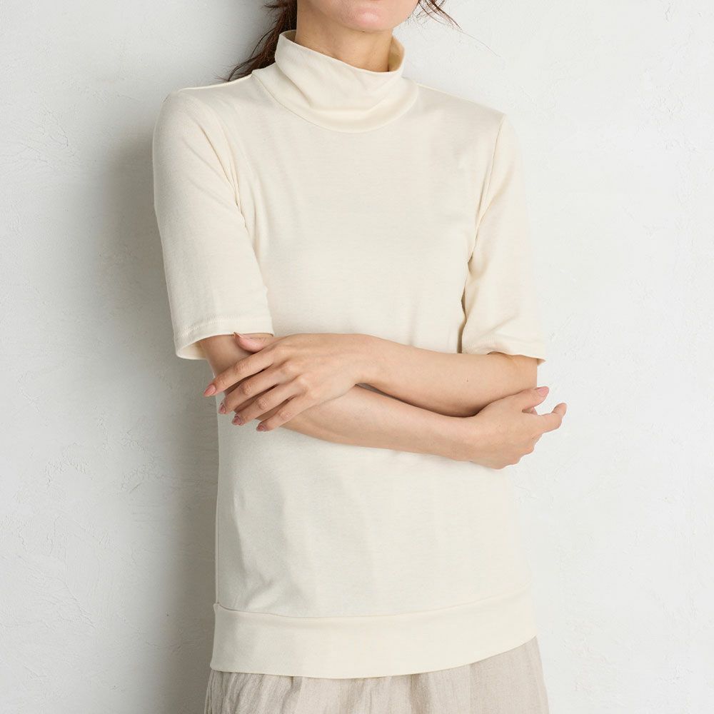 柔らかく伸縮性に優れたオーガニックコットンを使用したカットソー。肌触りがとても柔らかく、肌の弱い方や敏感肌の方にもおススメです。気になる首元や二の腕をカバーにも日焼け対策にも使用出来る嬉しいアイテム。