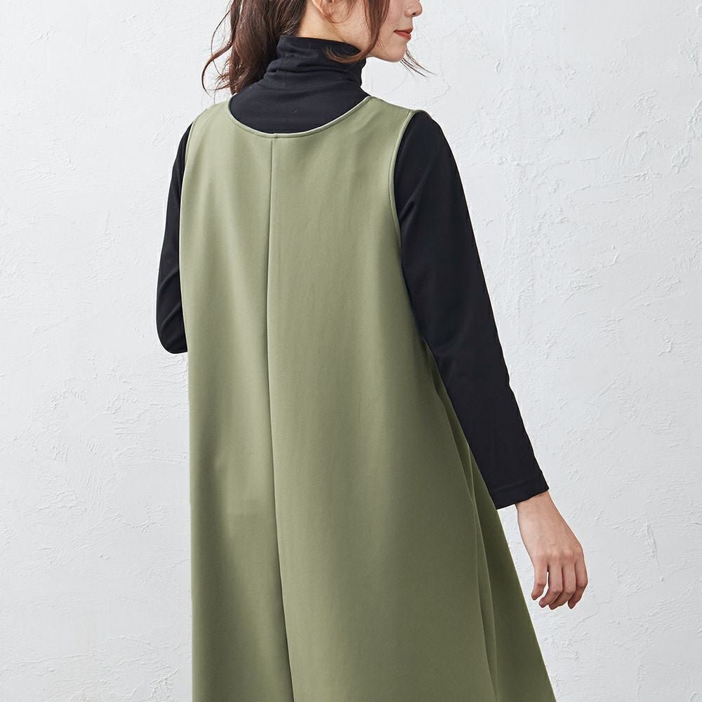 光沢感があり、軽くてストレッチの効いた素材のジャンパースカート。上品な艶感とドレープ感で高級感のあるスタイリングが叶うアイテム。ラクに取り扱い可能なイージーケアアイテムです。