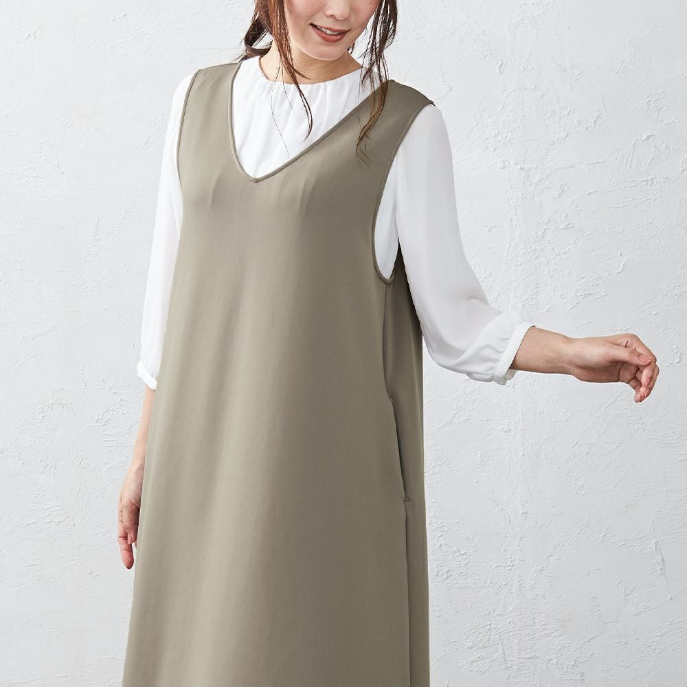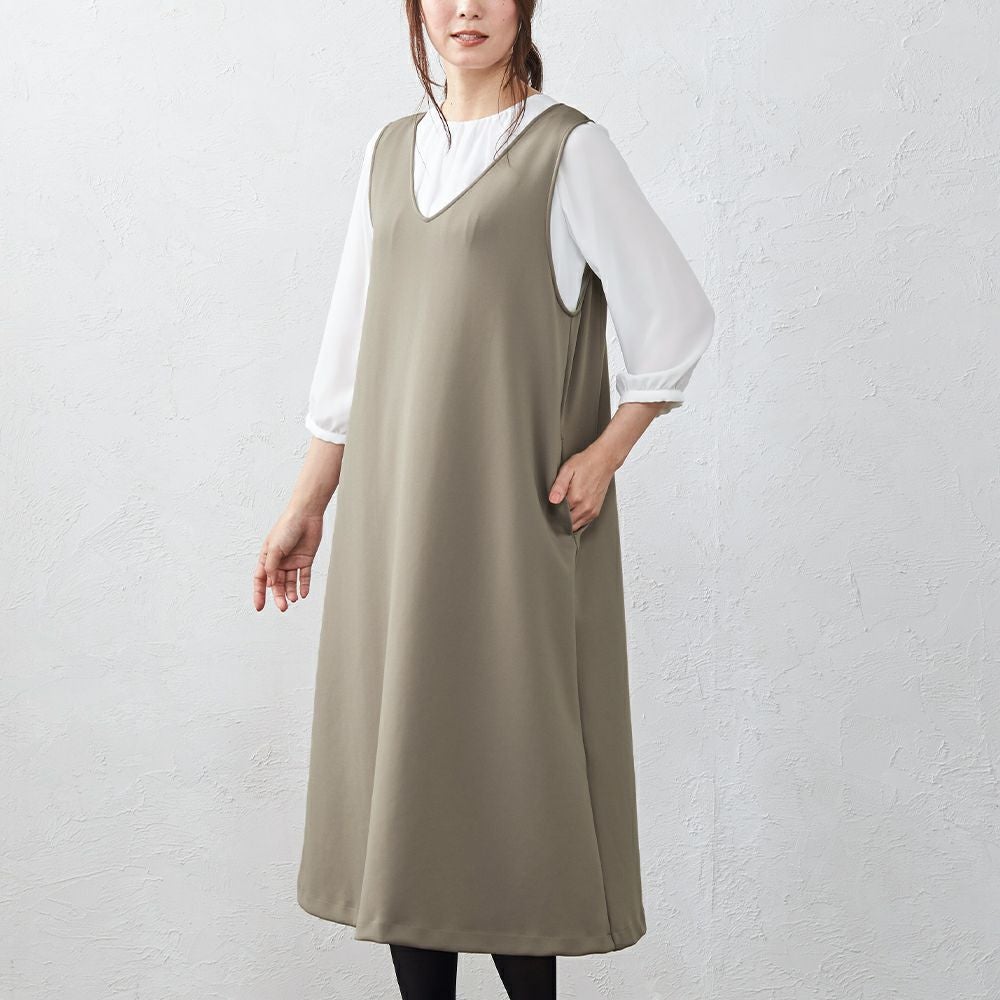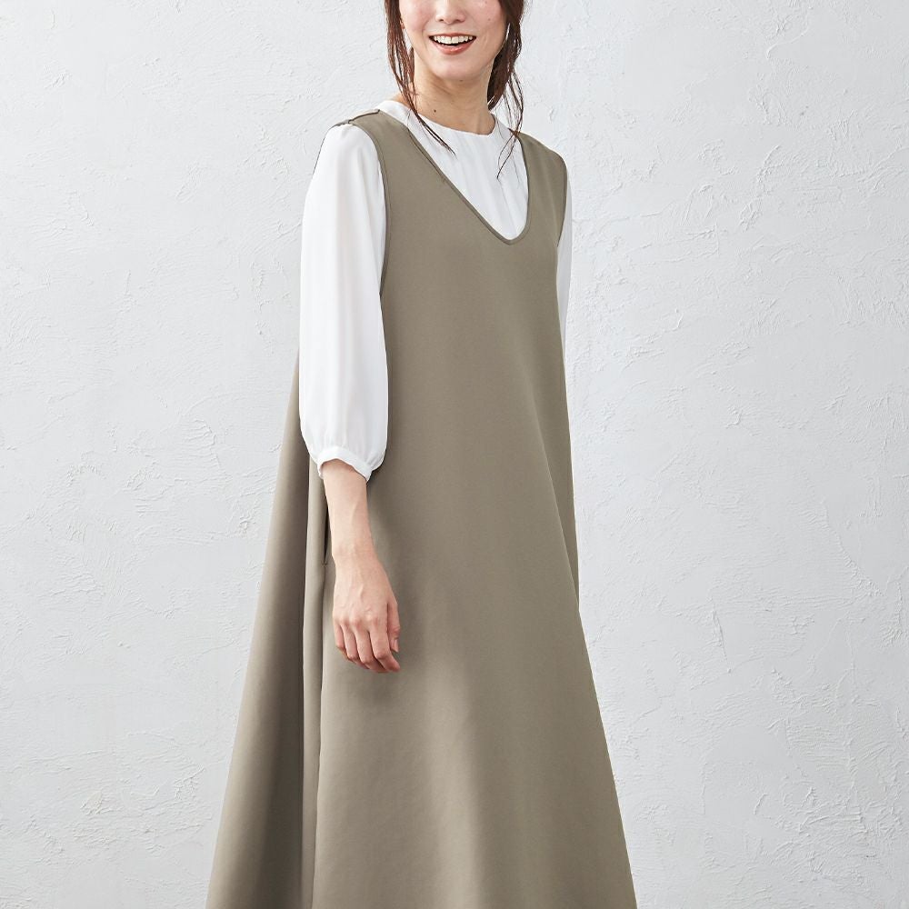 シワにならなくてお手入れカンタンなロング丈ジャンパースカート。ふわっと広がる裾が上品なシルエットで、ブラウスやハイネックとの相性も◎