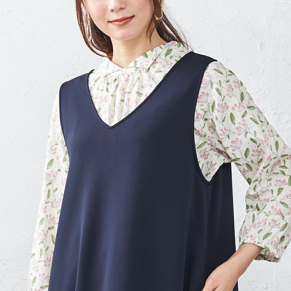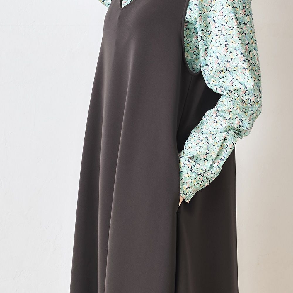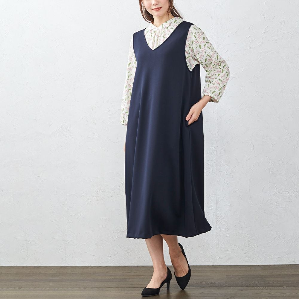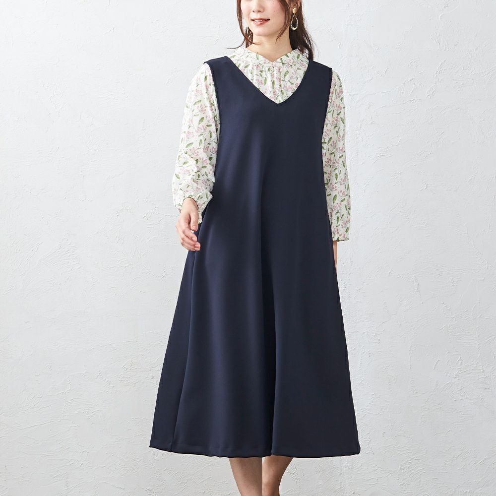 シワにならなくてお手入れカンタンなロング丈ジャンパースカート。ふわっと広がる裾が上品なシルエットで、ブラウスやハイネックとの相性も◎