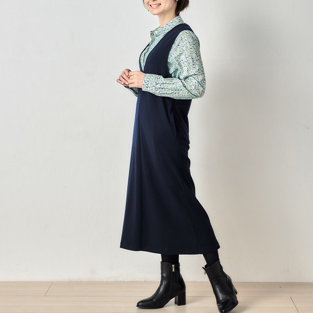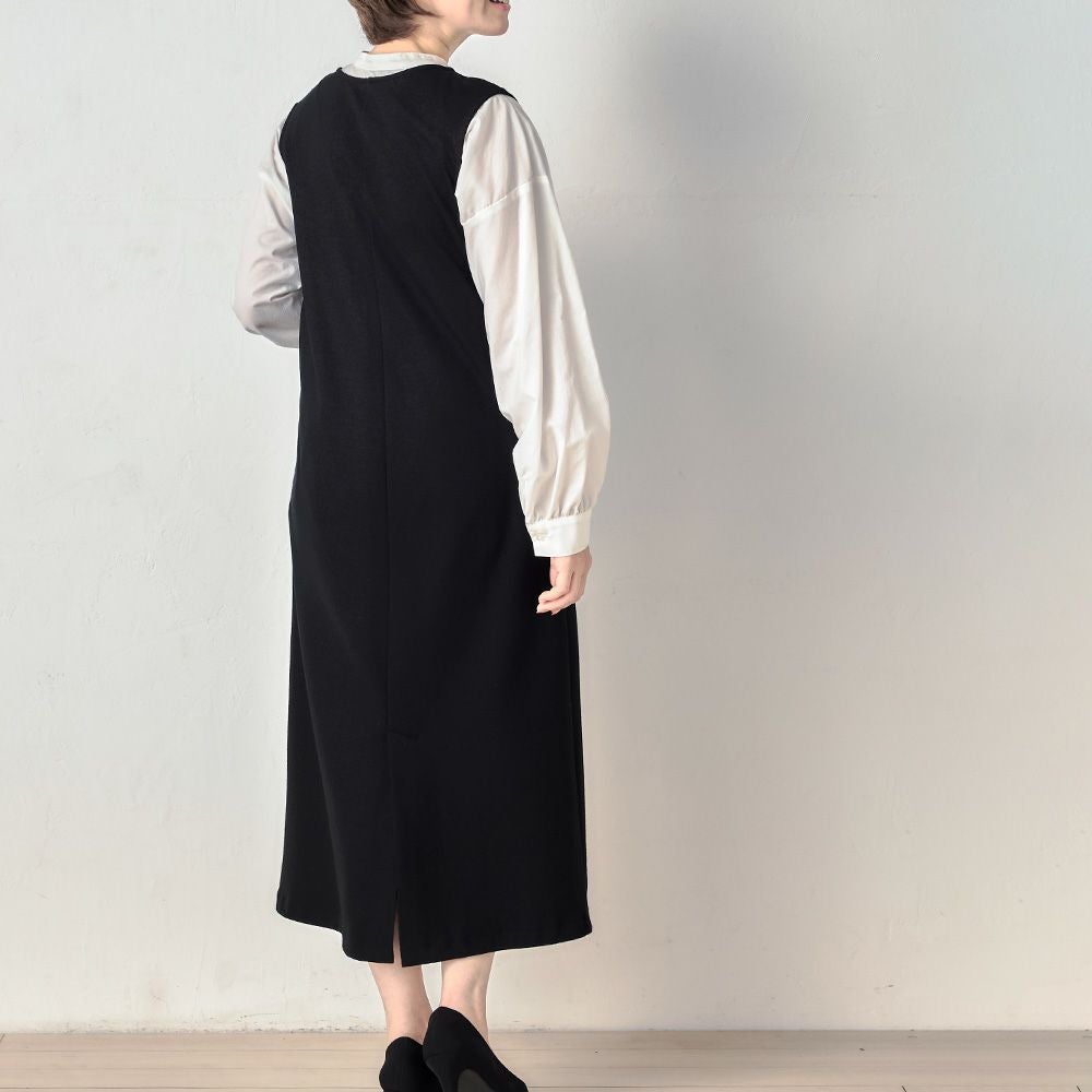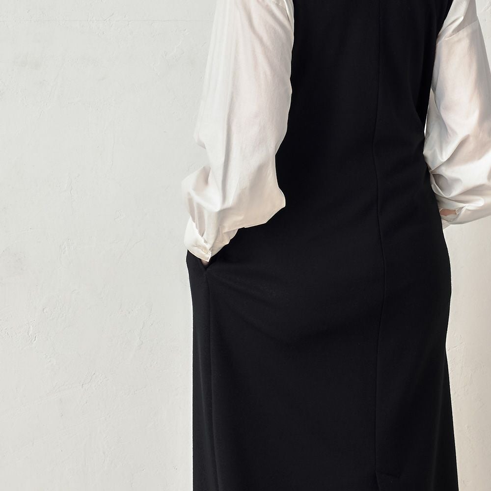 尾州の圧縮ウールを使用した、最高品質のジャンパースカート。 スラっと細見えする、シンプルで着まわしやすいアイテムです。