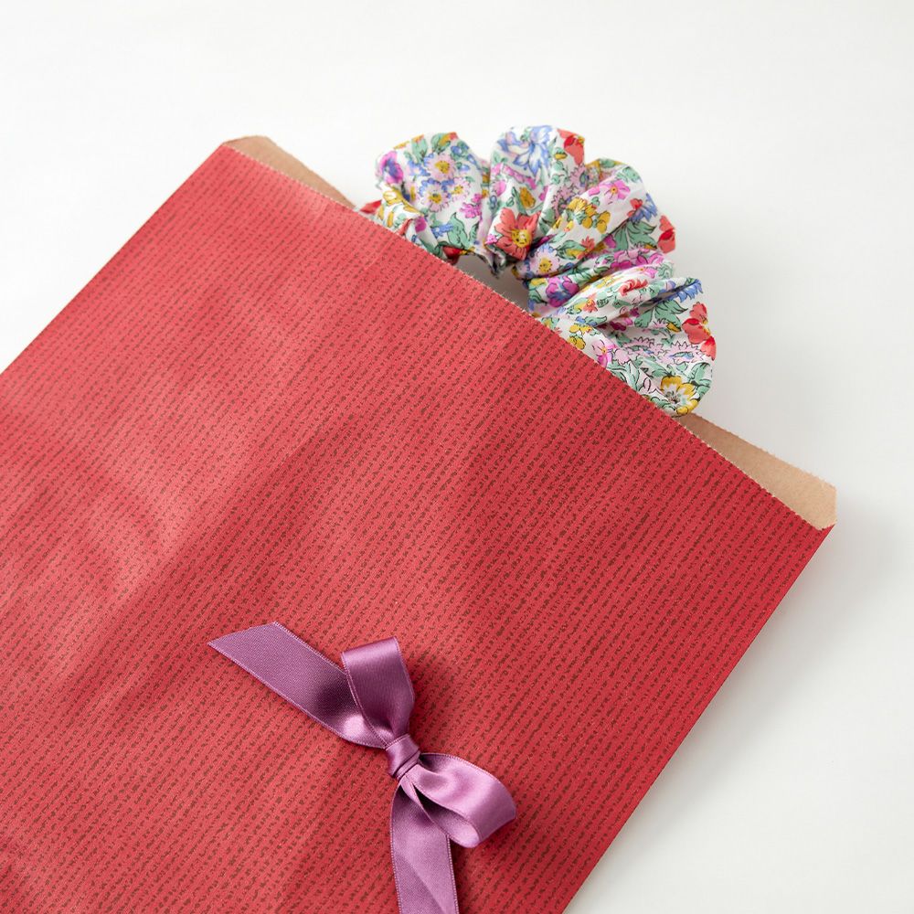私たちが一つ一つ思いを込めて作るリバティプリントの生地を使用したシュシュ付きのラッピングセット。