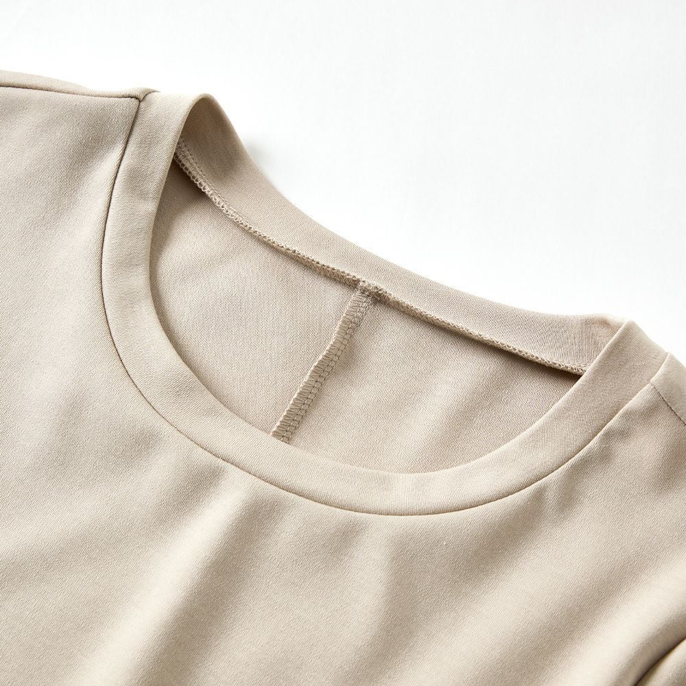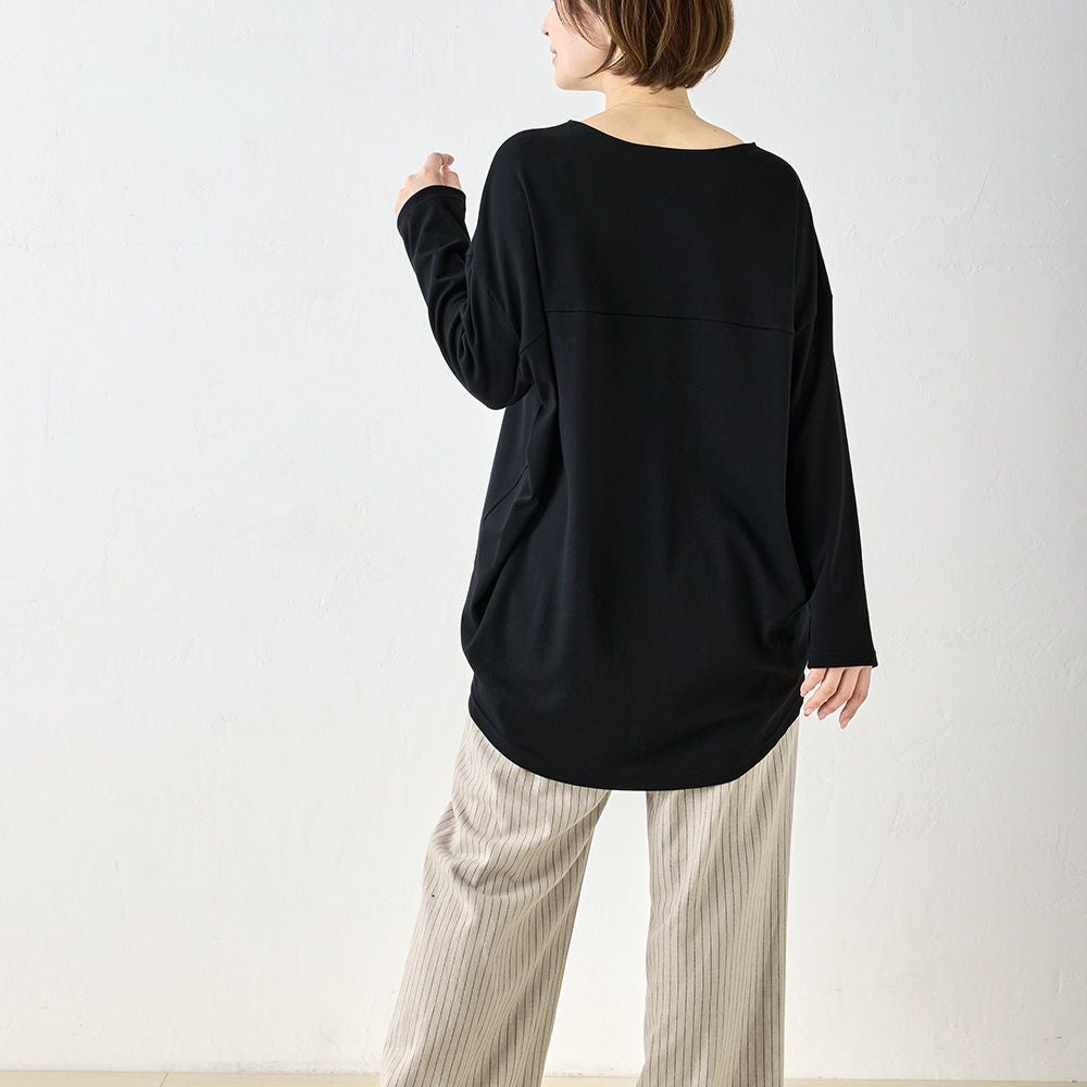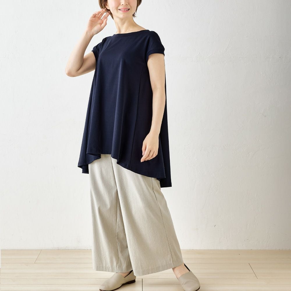 他の画像を見る Aベージュ Bネイビー Cブラック 尾州産素材 メール便 送料無料 ふんわり揺れる裾が可愛らしい、チュニック丈カットソー マジカル強撚コットン フレンチ袖カットソー カートに入れる お気に入りに登録する 当店特別価格 ¥ 6,600 税込