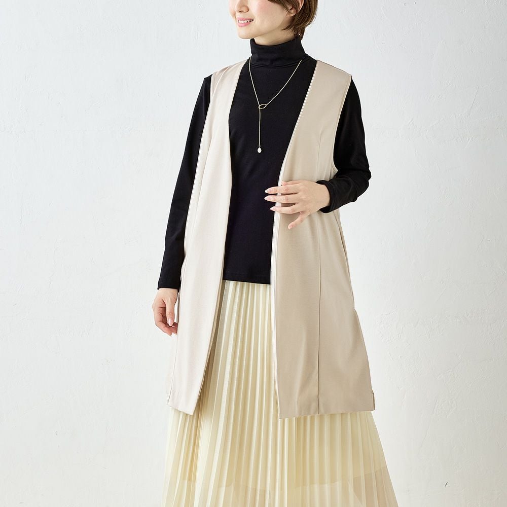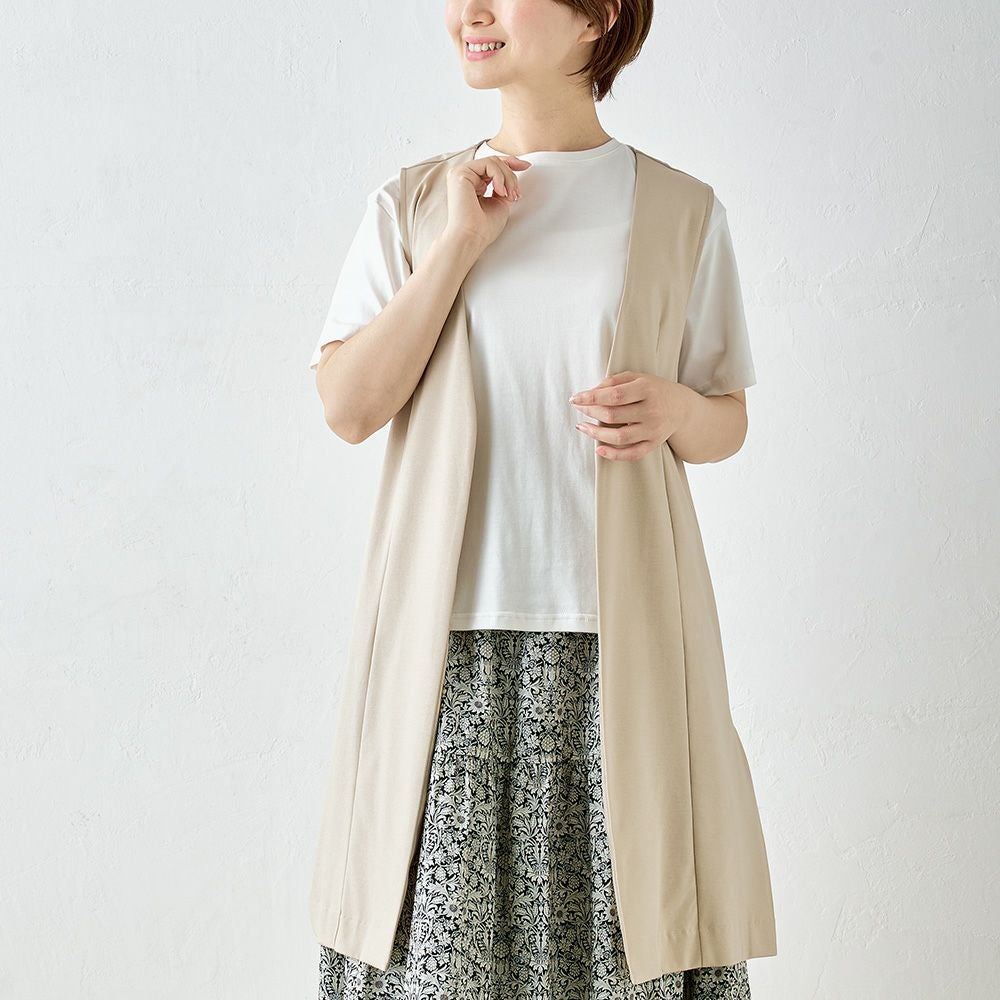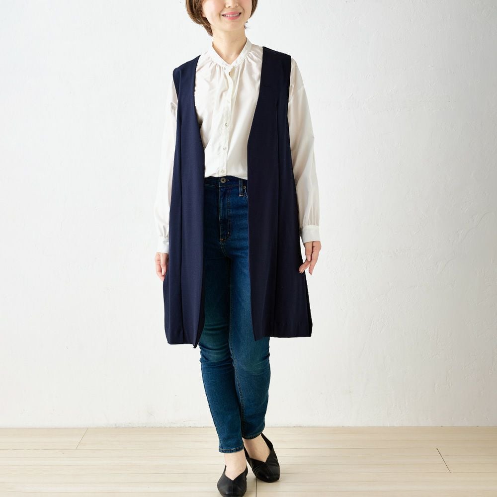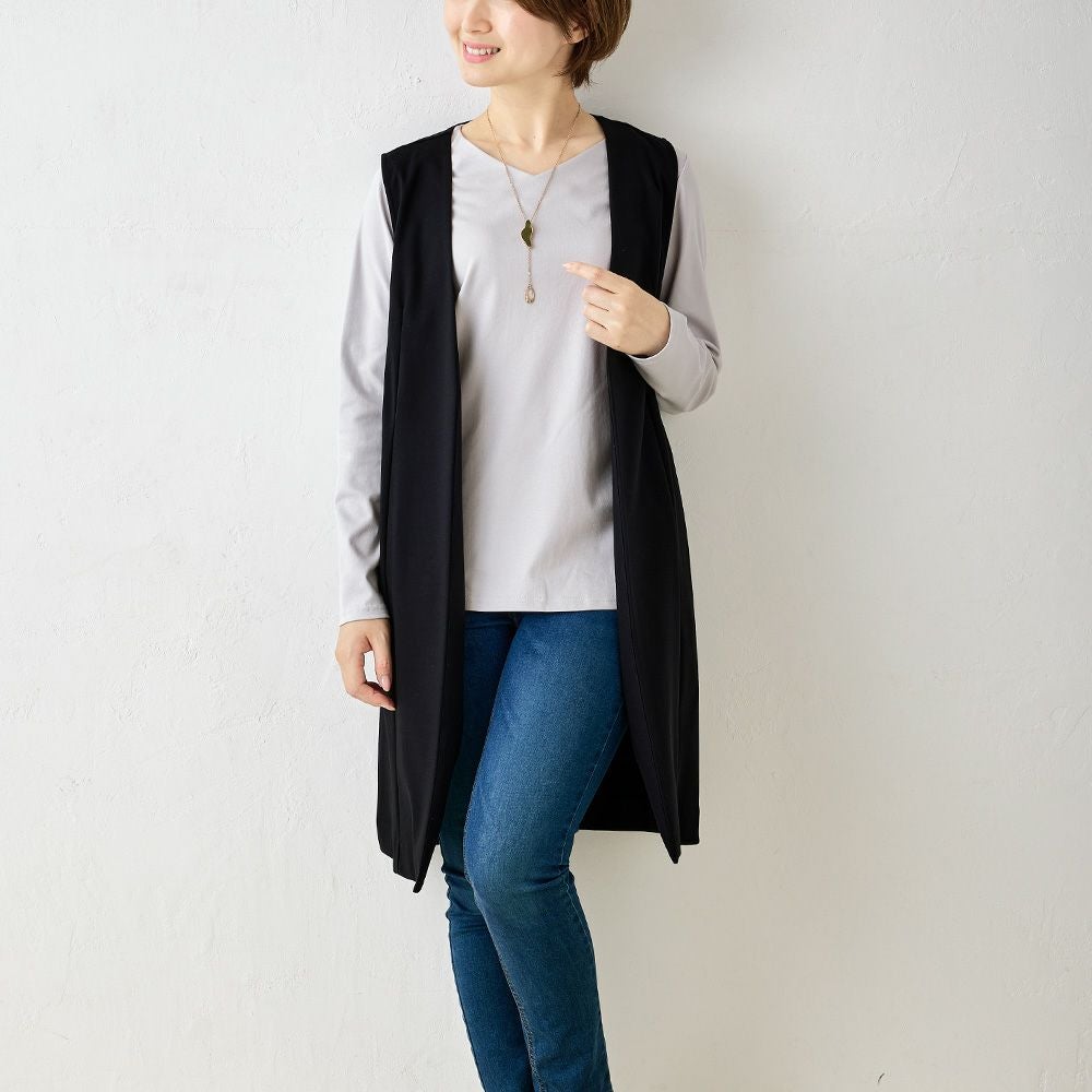 他の画像を見る Aベージュ Bネイビー Cブラック 尾州産素材 メール便 送料無料 キレイめにもカジュアルにも着まわせる優秀プラスワンアイテム マジカル強撚コットン ノーカラーロングジレ カートに入れる お気に入りに登録する 当店特別価格 ¥ 7,800 税込