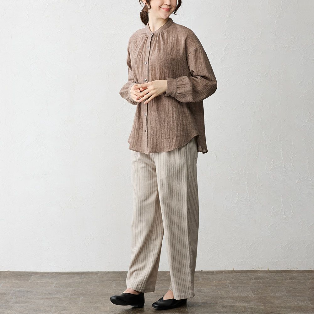 他の画像を見る Aベージュ Bネイビー Cチャコール 裾上げお直し対象 メリノウール メール便 送料無料 ふんわりやわらかく、優しい風合い。ほどよいセミワイドシルエットとストライプで脚長効果も◎ ウールコットン ストライプパンツ カートに入れる お気に入りに登録する 当店特別価格 ¥ 8,400 税込