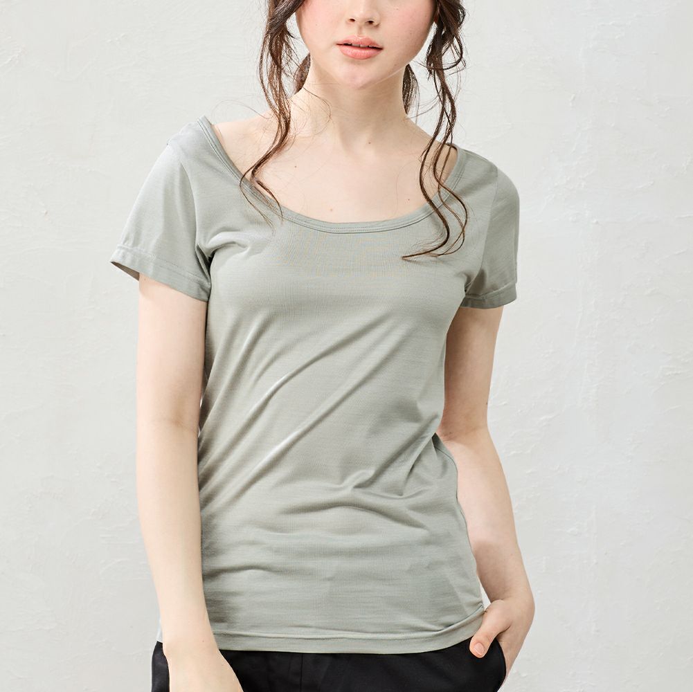他の画像を見る Aオフホワイト Bグレー Cモカ Dラベンダー Eサックス Fブラック メール便 送料無料 極上の着心地、滑らかな肌触り 【日本製】シルク バレエネック半袖カットソー カートに入れる お気に入りに登録する 当店特別価格 ¥ 8,400 税込