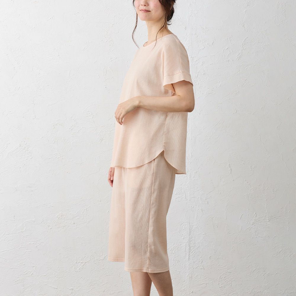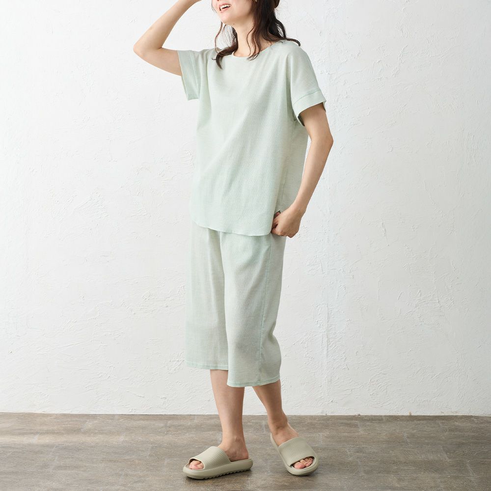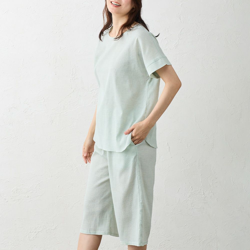 他の画像を見る Aオレンジセット Bグリーンセット Cグレーセット 裾上げお直し対象 オーガニックコットン メール便 送料無料 オーガニックコットンのやさしさと、高島ちぢみの涼やかさを纏うルームウェアパンツ。肌に張りつかず風が通り抜けるような軽やかさで、真夏の毎日にぴったりの一着です。 高島ちぢみ ブラウス+ハーフパンツセット カートに入れる お気に入りに登録する 当店特別価格 ¥ 7,650 税込