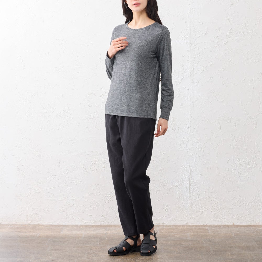 他の画像を見る Aオフホワイト Bベージュ Cチャコール Dブラック あったか素材 メール便 送料無料 ふんわり空気の様な肌触りのあったか綿カシミヤの長袖Tシャツ コットンカシミヤ クルーネックカットソー カートに入れる お気に入りに登録する 当店特別価格 ¥ 6,200 税込