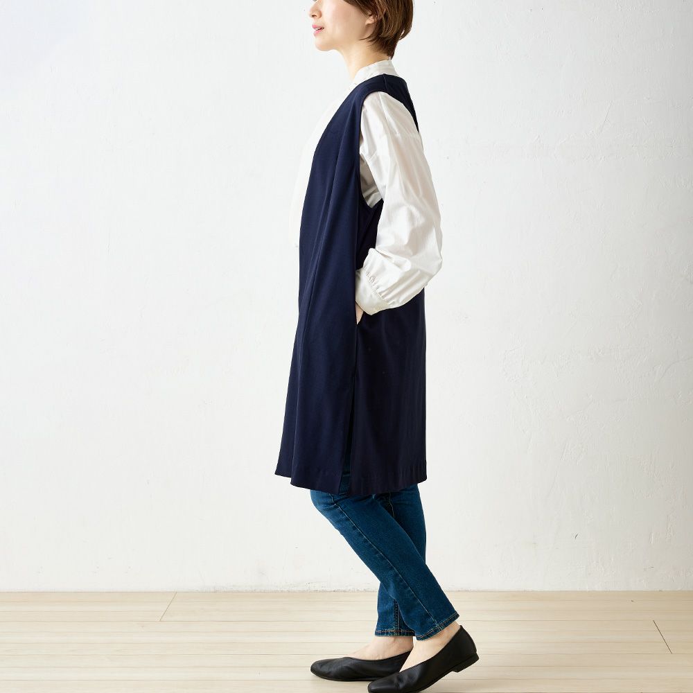 他の画像を見る Aベージュ Bネイビー Cブラック 尾州産素材 メール便 送料無料 キレイめにもカジュアルにも着まわせる優秀プラスワンアイテム マジカル強撚コットン ノーカラーロングジレ カートに入れる お気に入りに登録する 当店特別価格 ¥ 7,800 税込