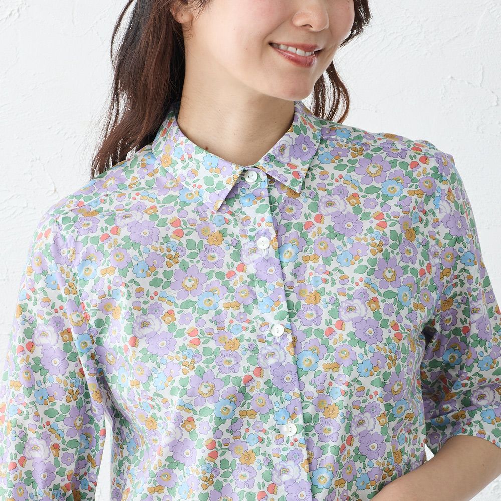 他の画像を見る Bホワイト×レッド系 Cホワイト×パープル系 Eアイボリー×グリーン系 Fブルー×ネイビー系 Kネイビー×マルチ系 メール便 送料無料 品よく華やぐ、リバティプリント生地を使用したシャツブラウス LIBERTY リバティ七分袖ブラウス カートに入れる お気に入りに登録する 当店特別価格 ¥ 10,800 税込