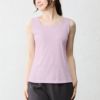 通常のブラ紐隠しインナーより露出を抑えることで、よりヘルシーに着やすくなりました。アウターの邪魔をしないスクエア型の胸元は、デコルテを綺麗に見せてくれます。羽織やアウターから見えても上品にまとまり合わせやすさも◎