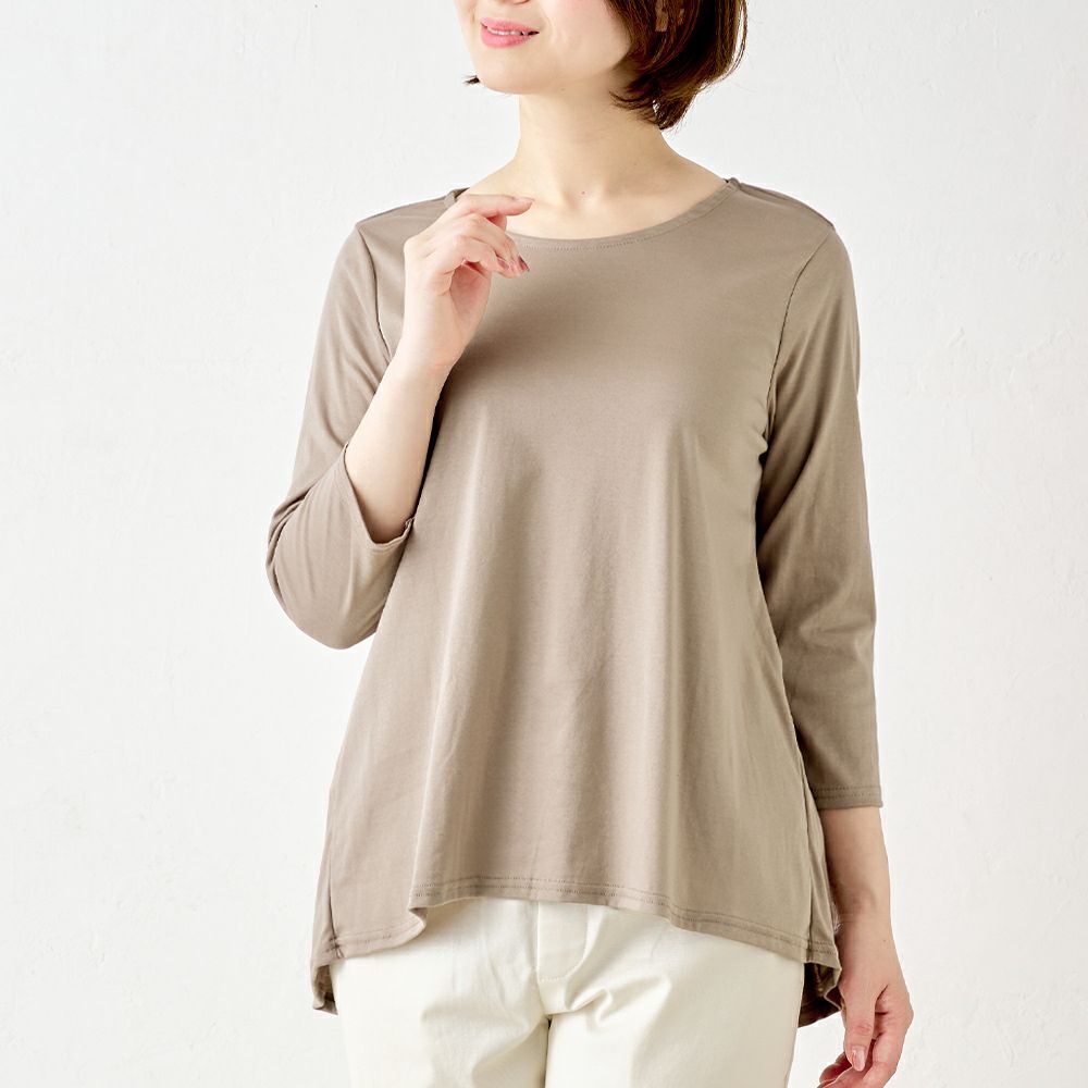 他の画像を見る Aベージュ Bネイビー Cブラック 尾州産素材 メール便 送料無料 ふんわり揺れる裾が可愛らしい、チュニック丈カットソー マジカル強撚コットン フレンチ袖カットソー カートに入れる お気に入りに登録する 当店特別価格 ¥ 6,600 税込