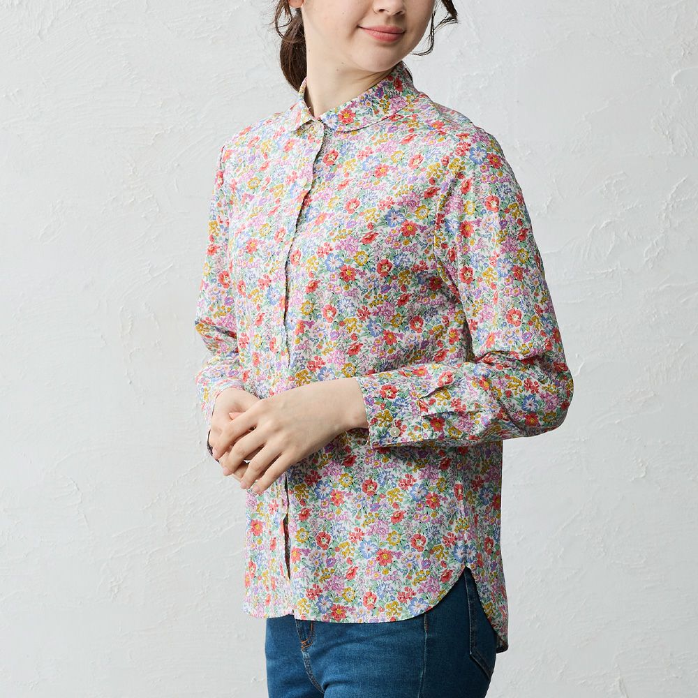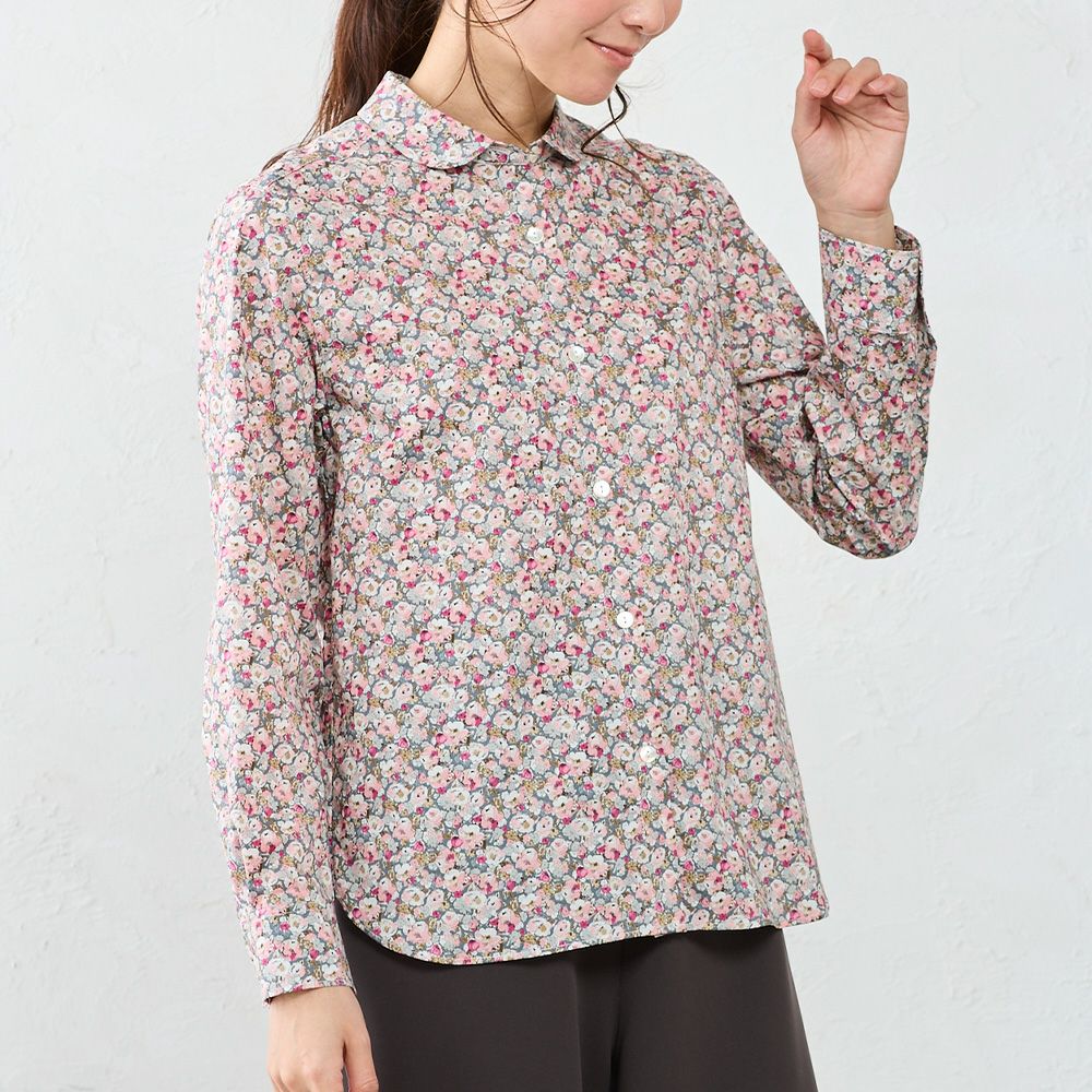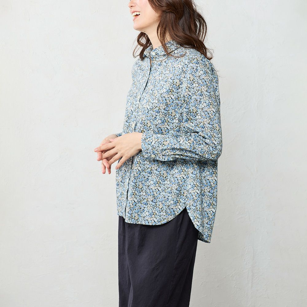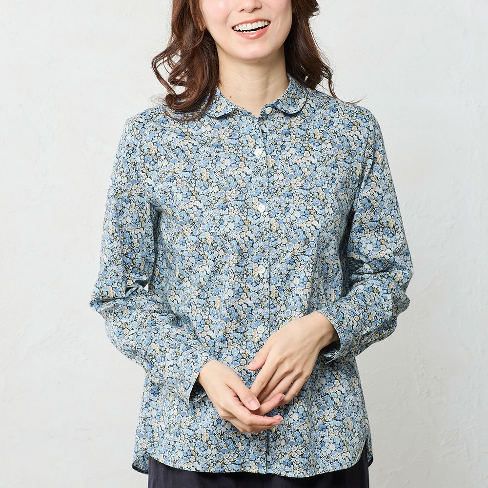 リバティプリント タナローン使用 丸襟タイプのシャツブラウス リバティプリント 丸襟シャツ