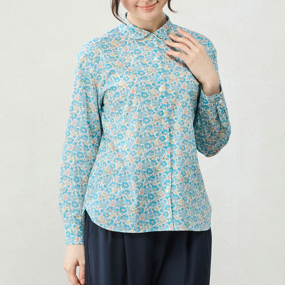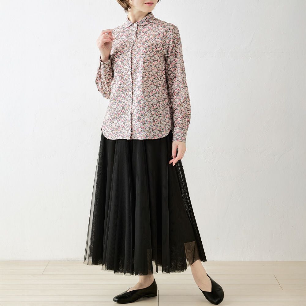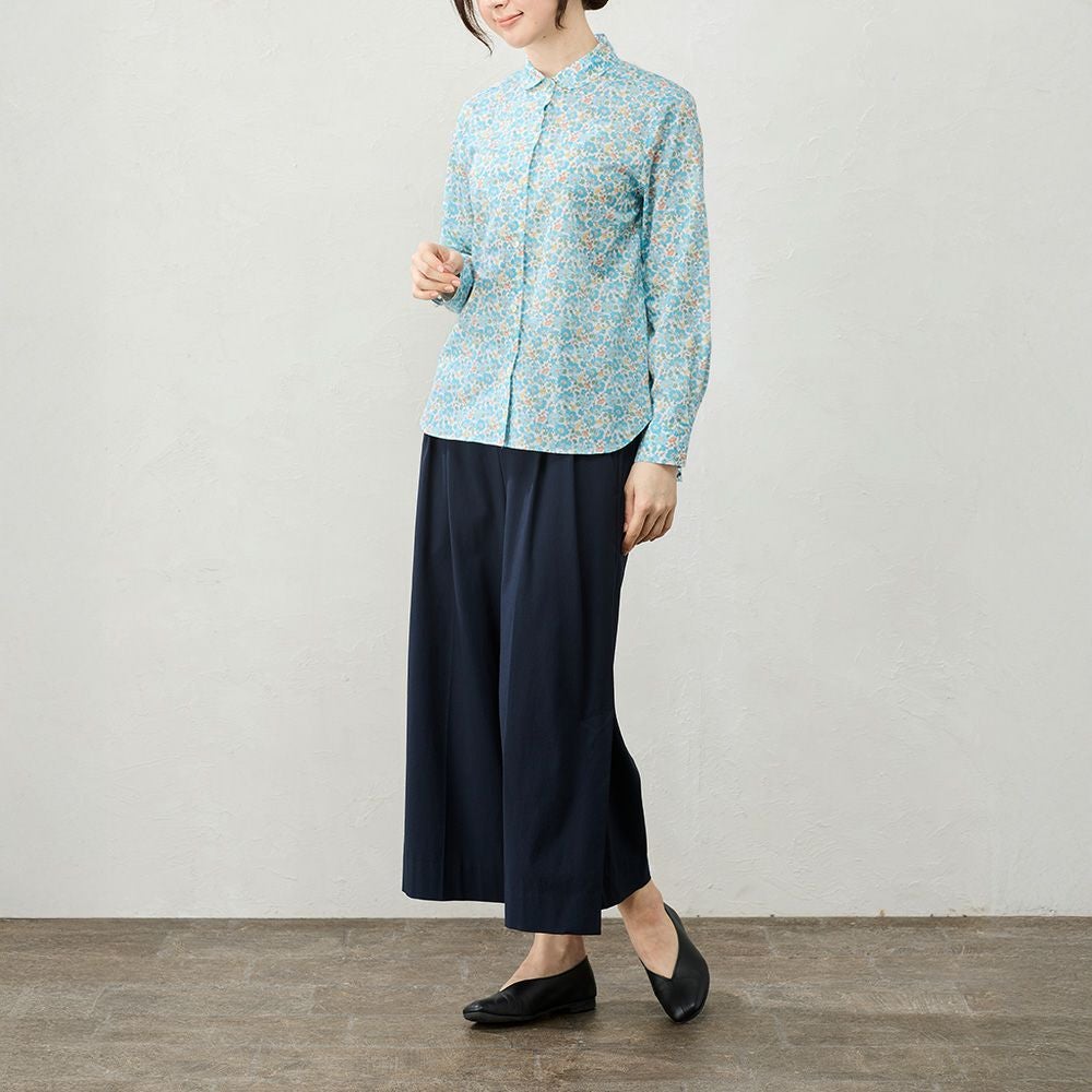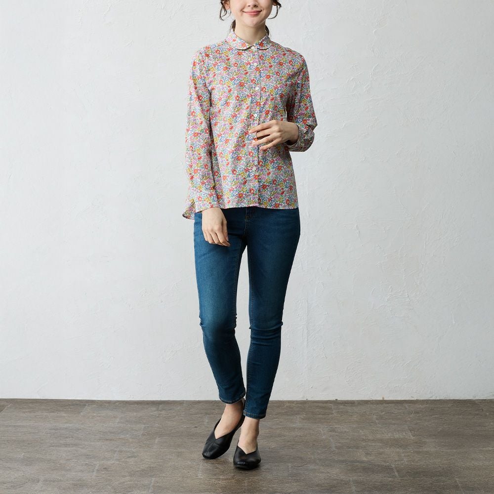 リバティプリント 丸襟シャツ