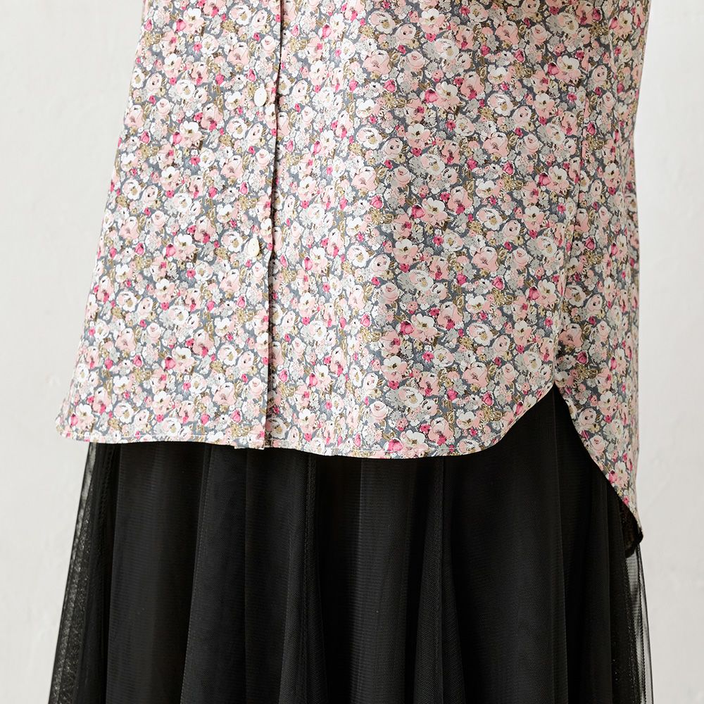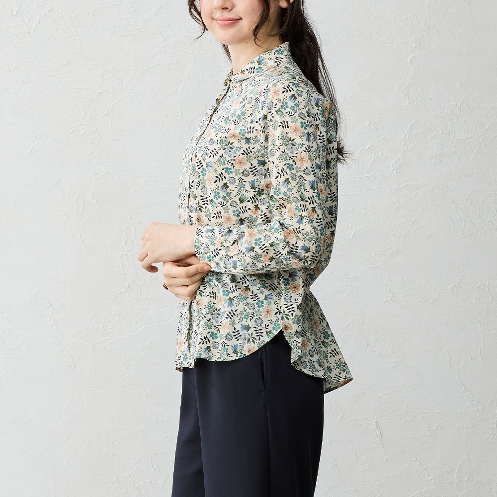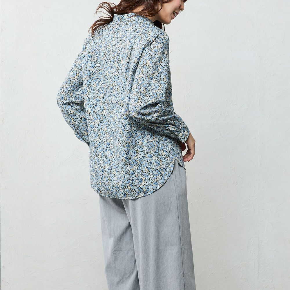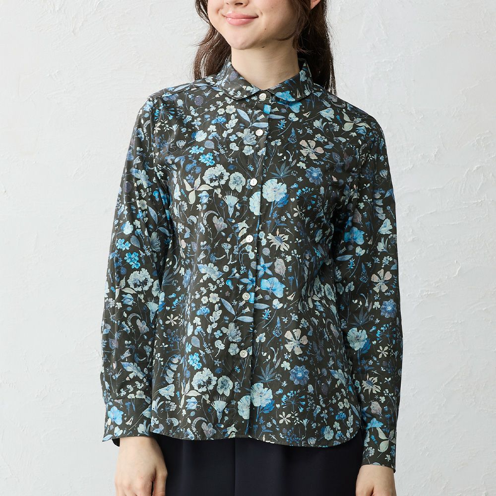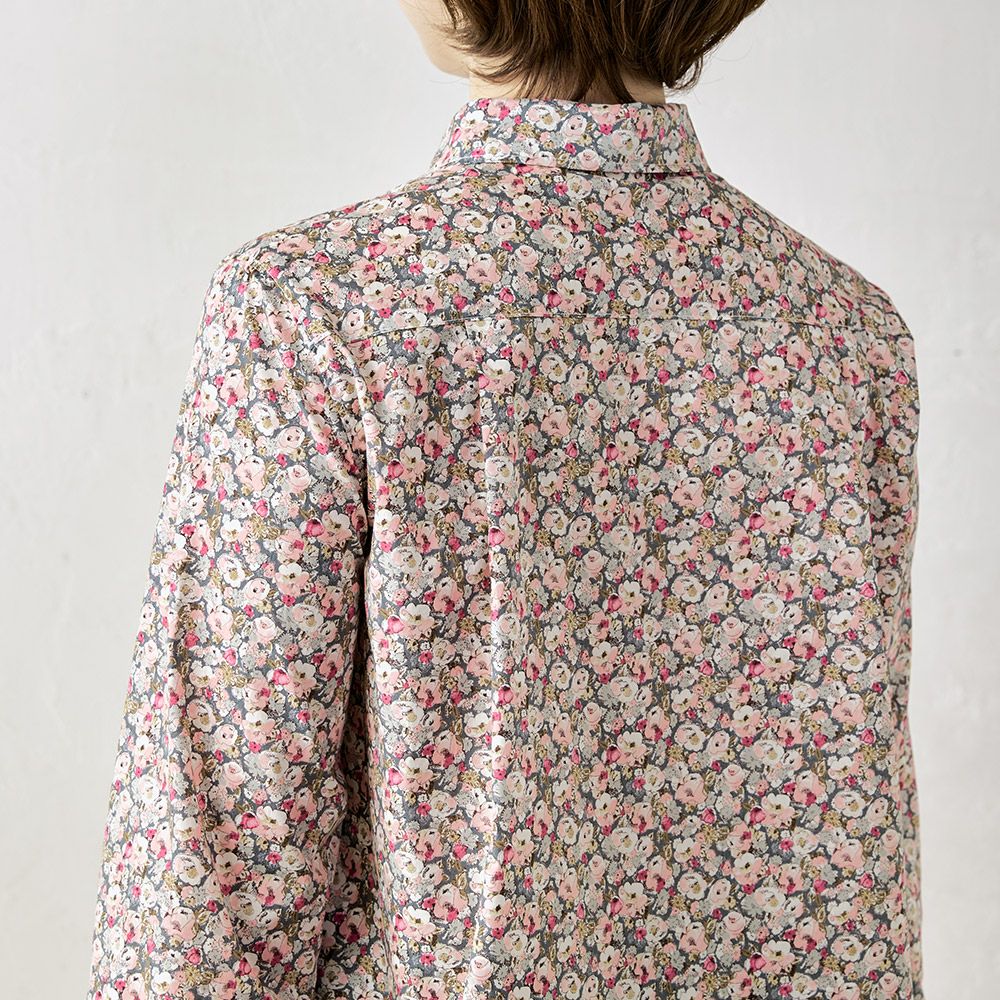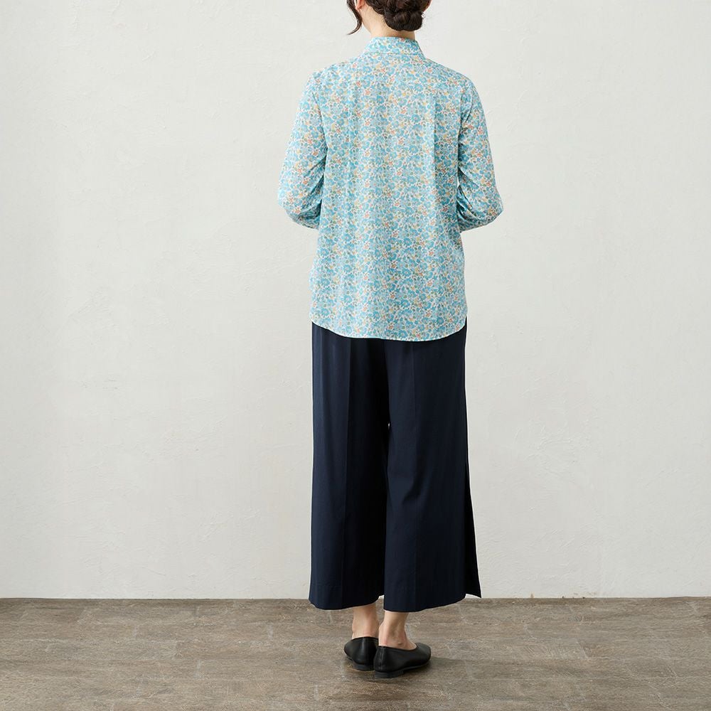 品よく華やぐ、リバティプリント生地を使用したシャツ。