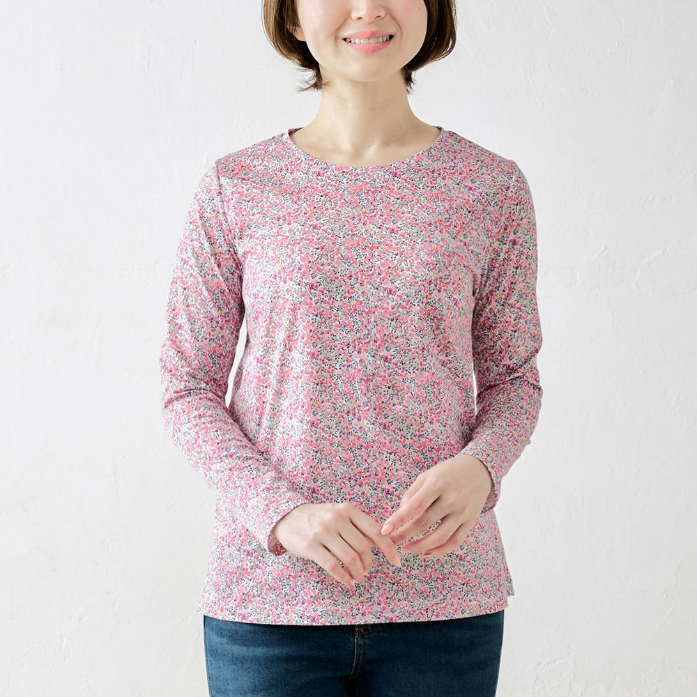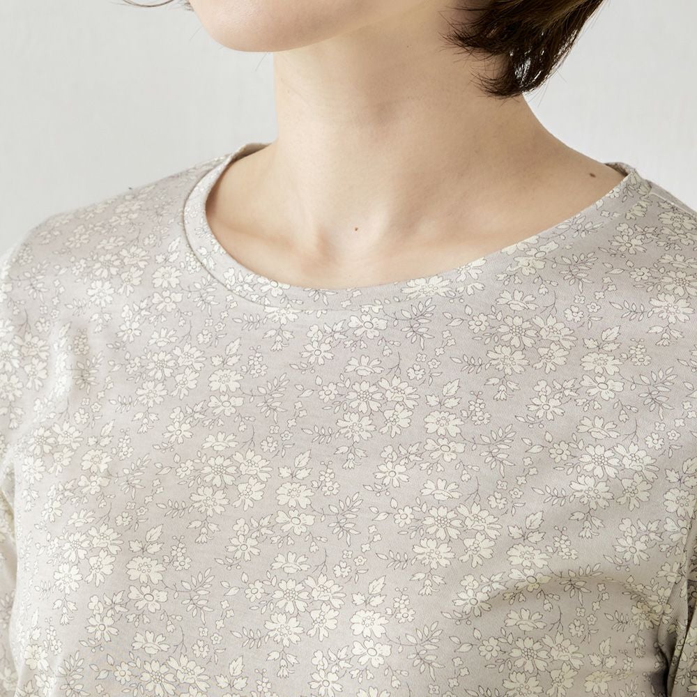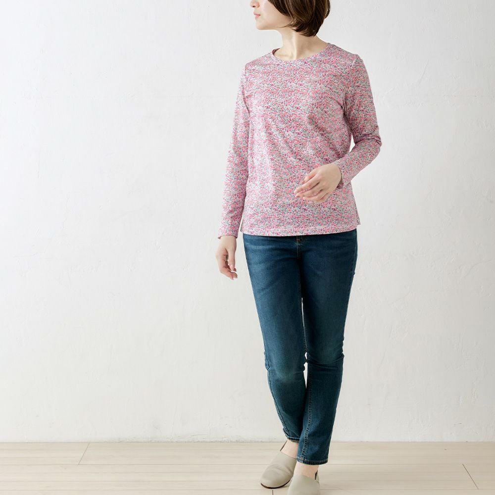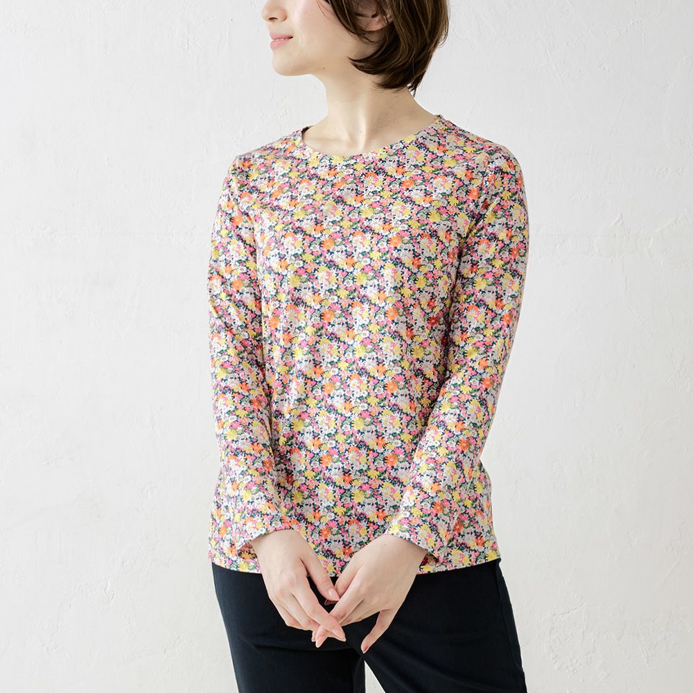 品よく華やぐ、リバティプリント生地を使用したカットソー。 コーディネートを華やかに彩る主役級の1着。 ダーツ入りですっきりキレイに見える、シンプルながらこだわりのシルエット。