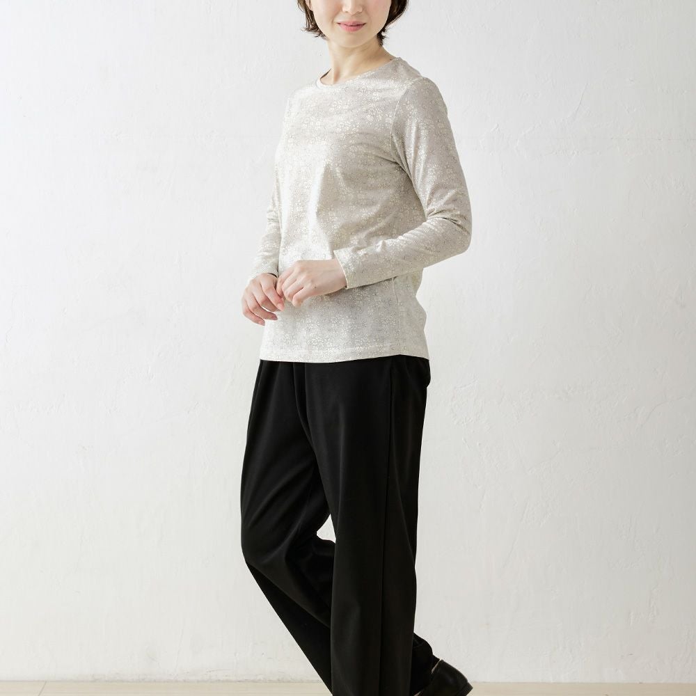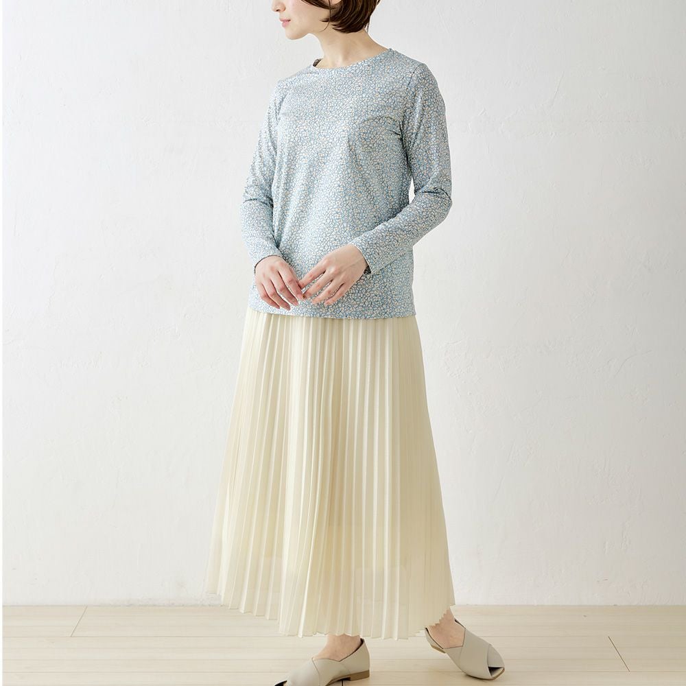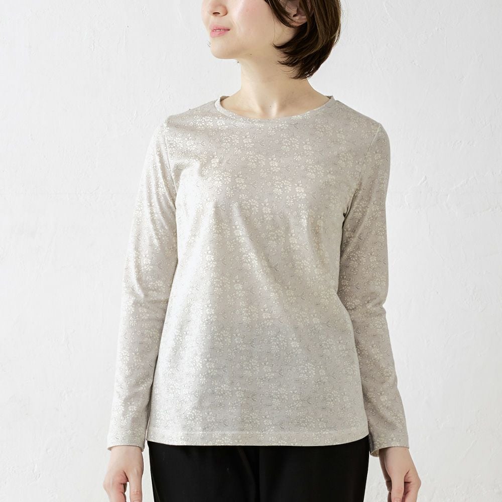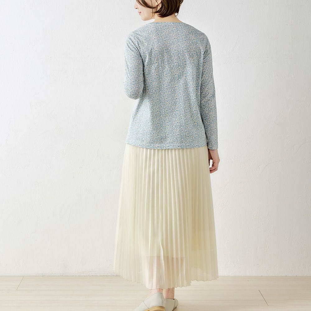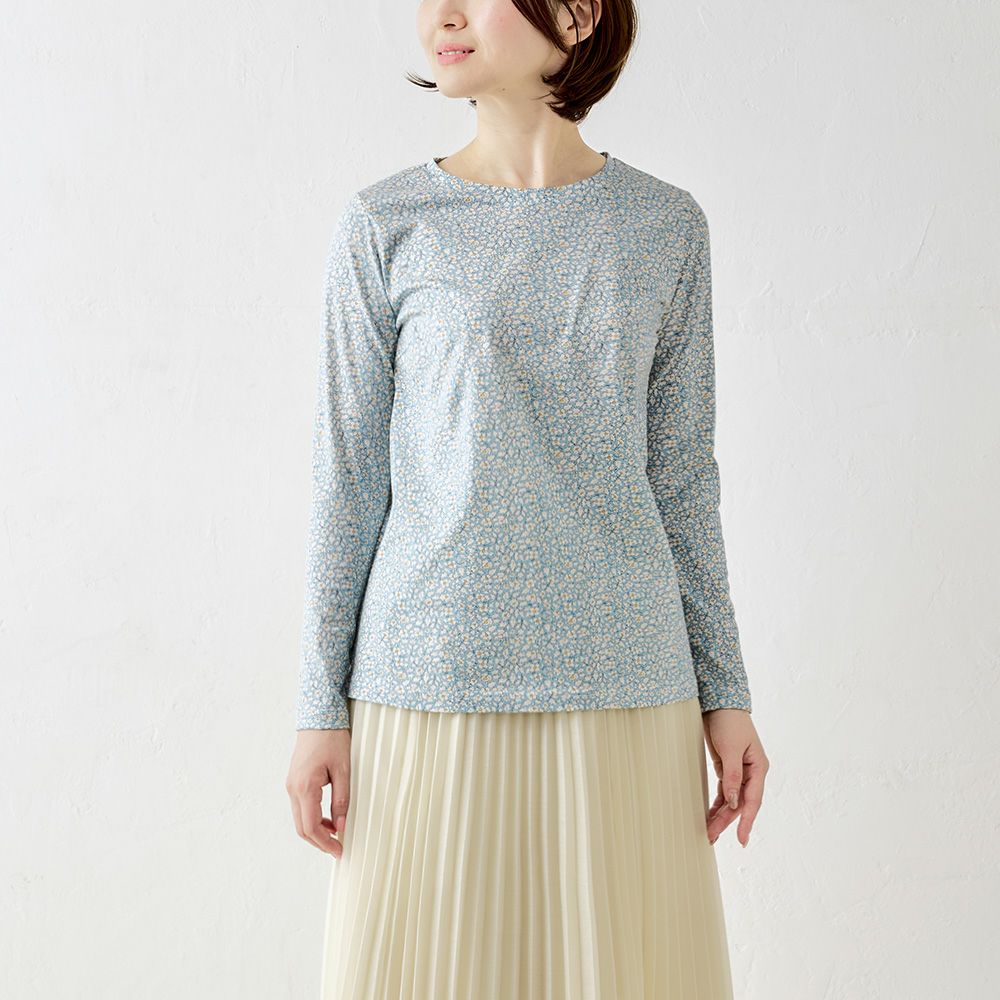 品よく華やぐ、リバティプリント生地を使用したカットソー。 コーディネートを華やかに彩る主役級の1着。 ダーツ入りですっきりキレイに見える、シンプルながらこだわりのシルエット。