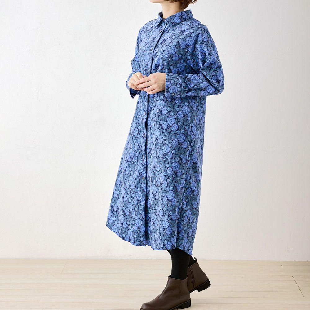 【数量限定】リバティプリント コーデュロイ シャツワンピース
