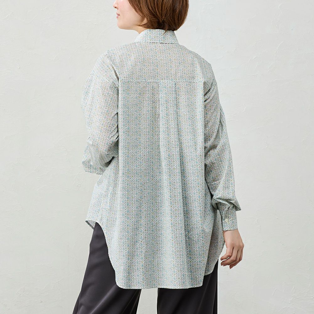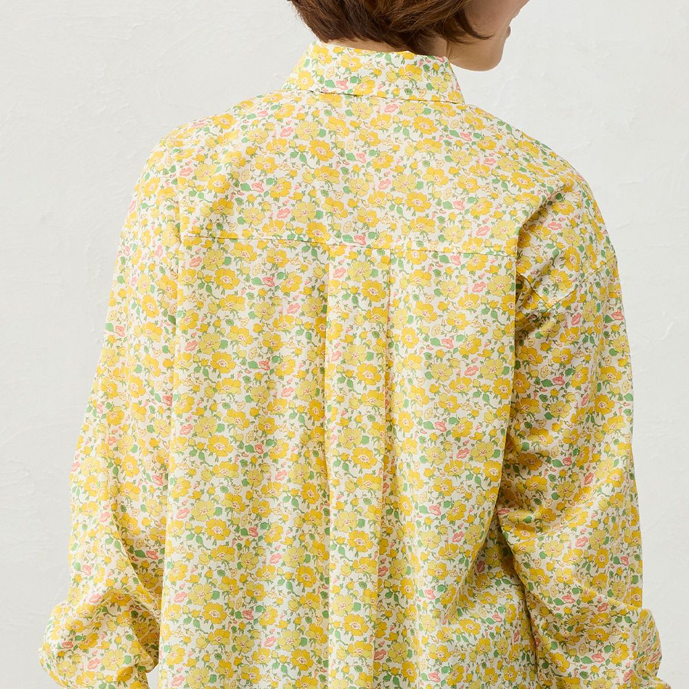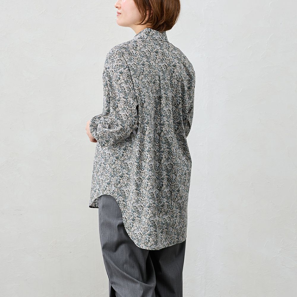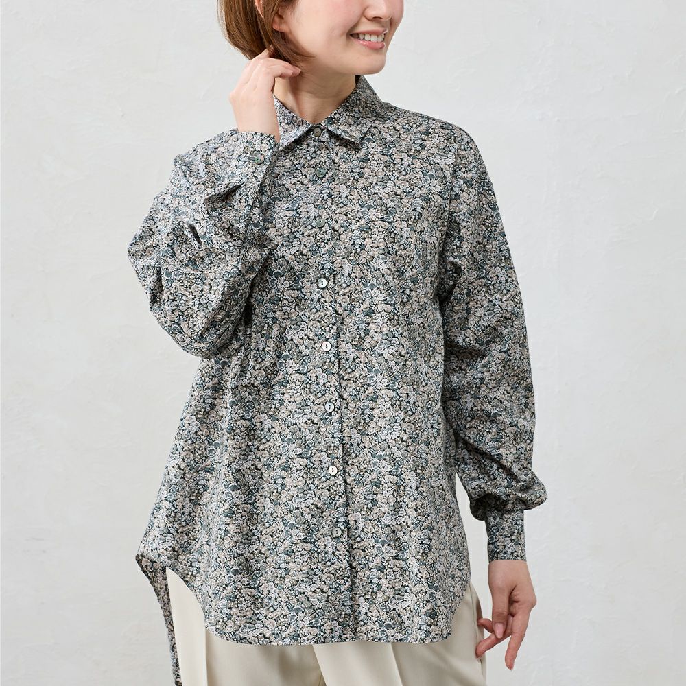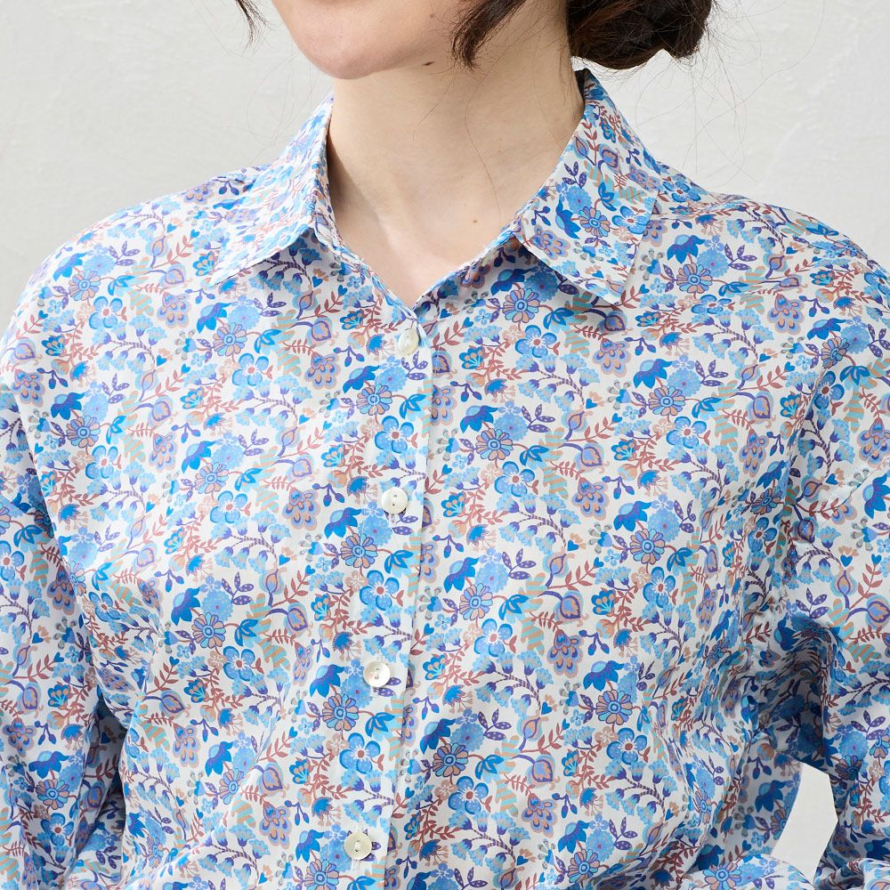 品よく華やぐ、リバティプリント生地を使用したシャツ。 コーディネートを華やかに彩る主役級の1着。 デニムなどのカジュアルコーデ~ジャケットと合わせてキレイめにも着られる、程よい甘さをプラスできるアイテム。