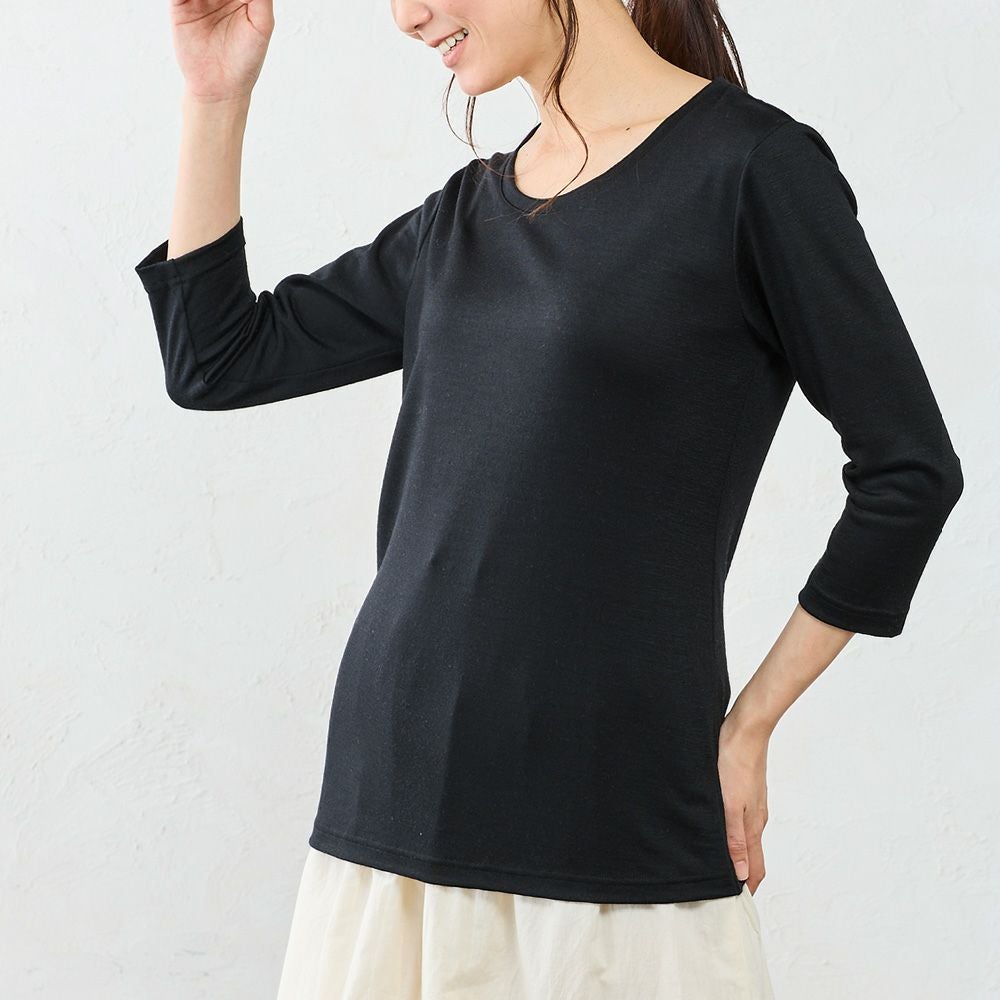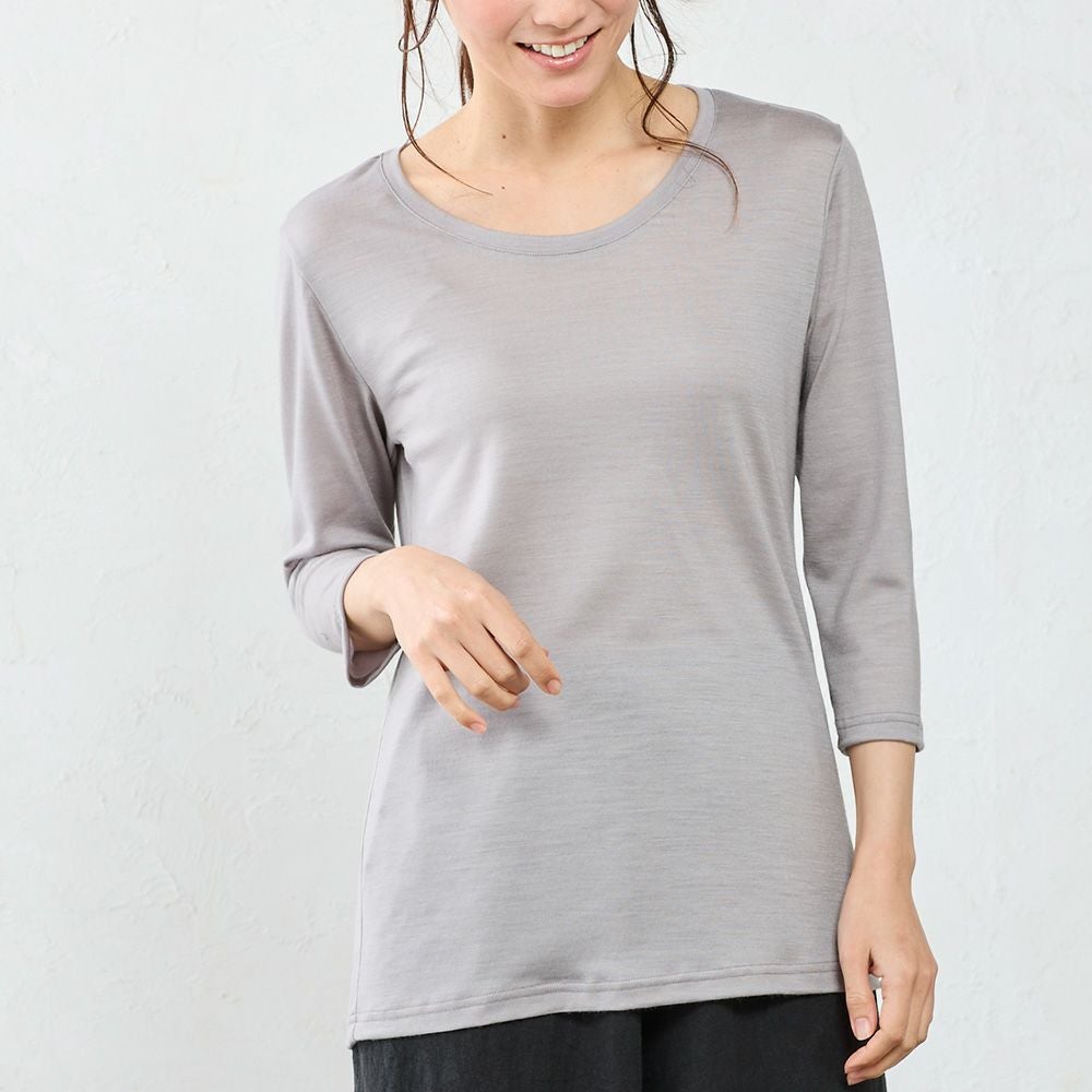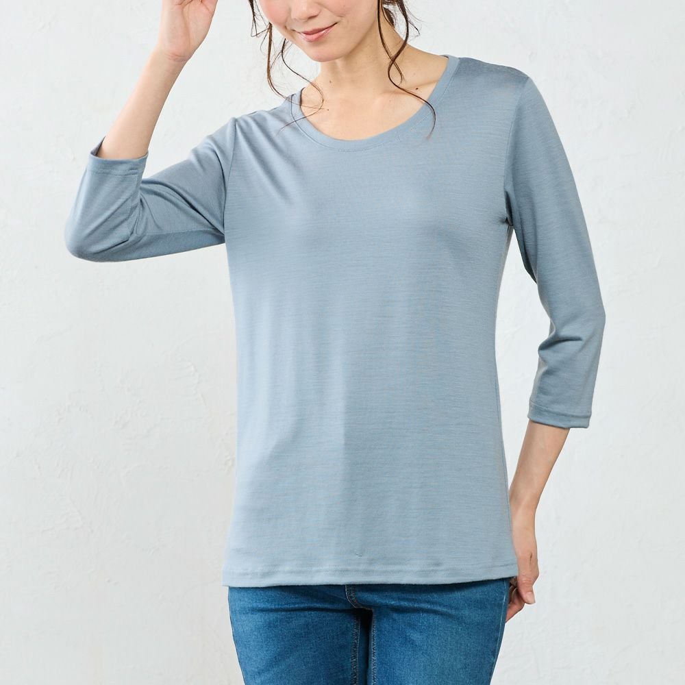 メリノウール クルーネック 七分袖カットソー