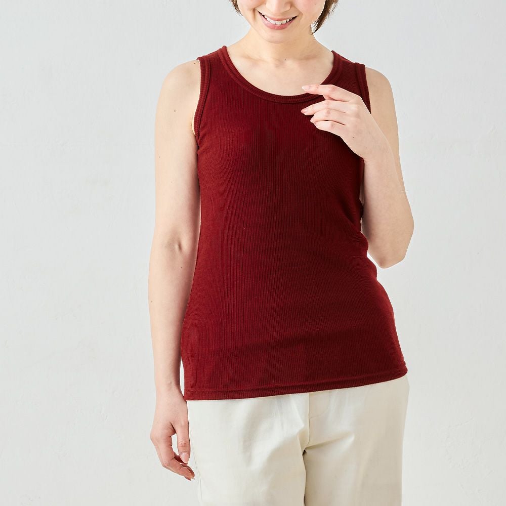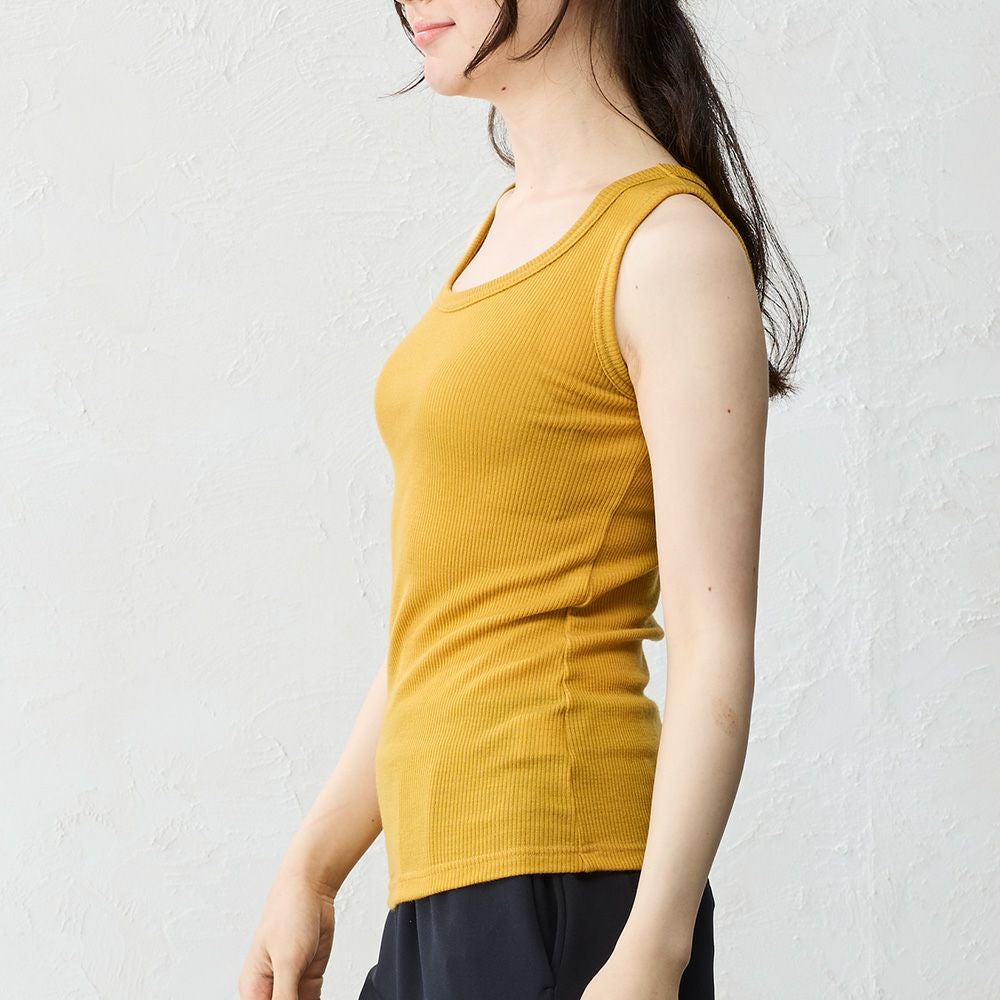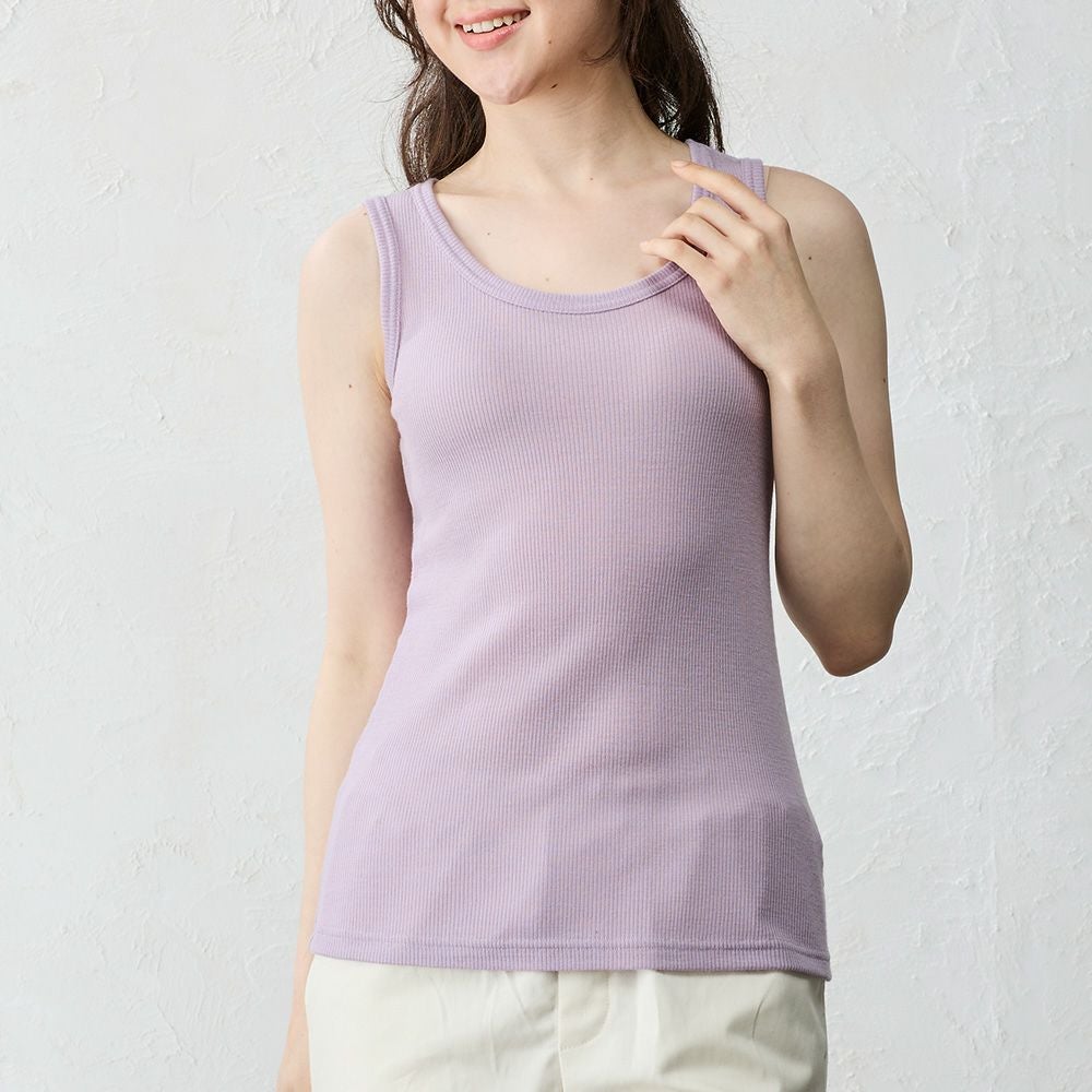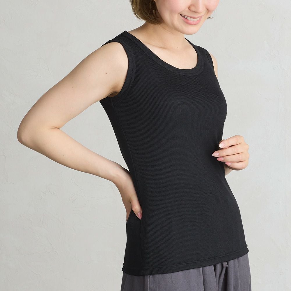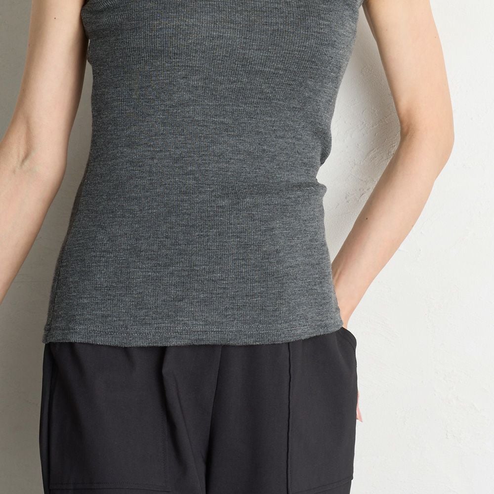 伸縮性抜群のリブ素材のメリノウール素材を使用した定番のタンクトップ。普段使いのインナーとしても。登山やアウトドア等のアクティブシーンにも。シーンを選ばずご利用頂ける定番アイテムです。襟ぐりや袖ぐりは太幅のバインダー始末で一枚でも使いやすいデザインに。