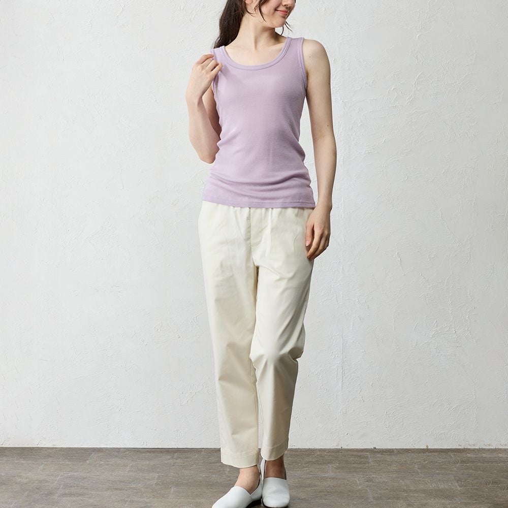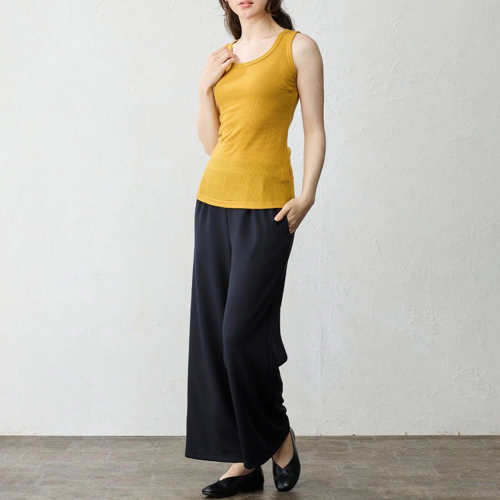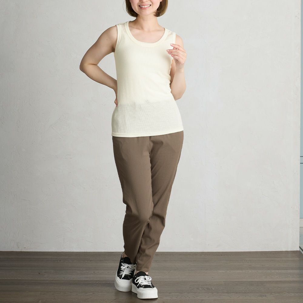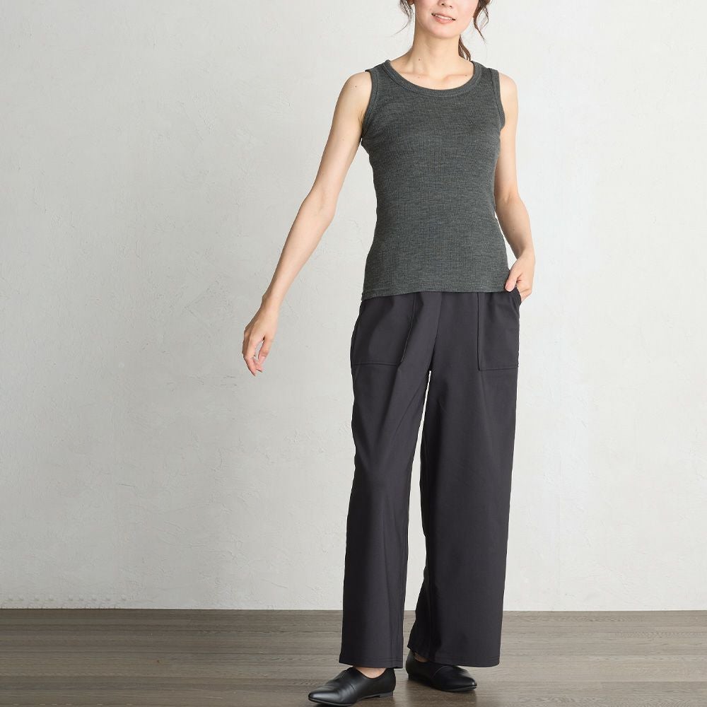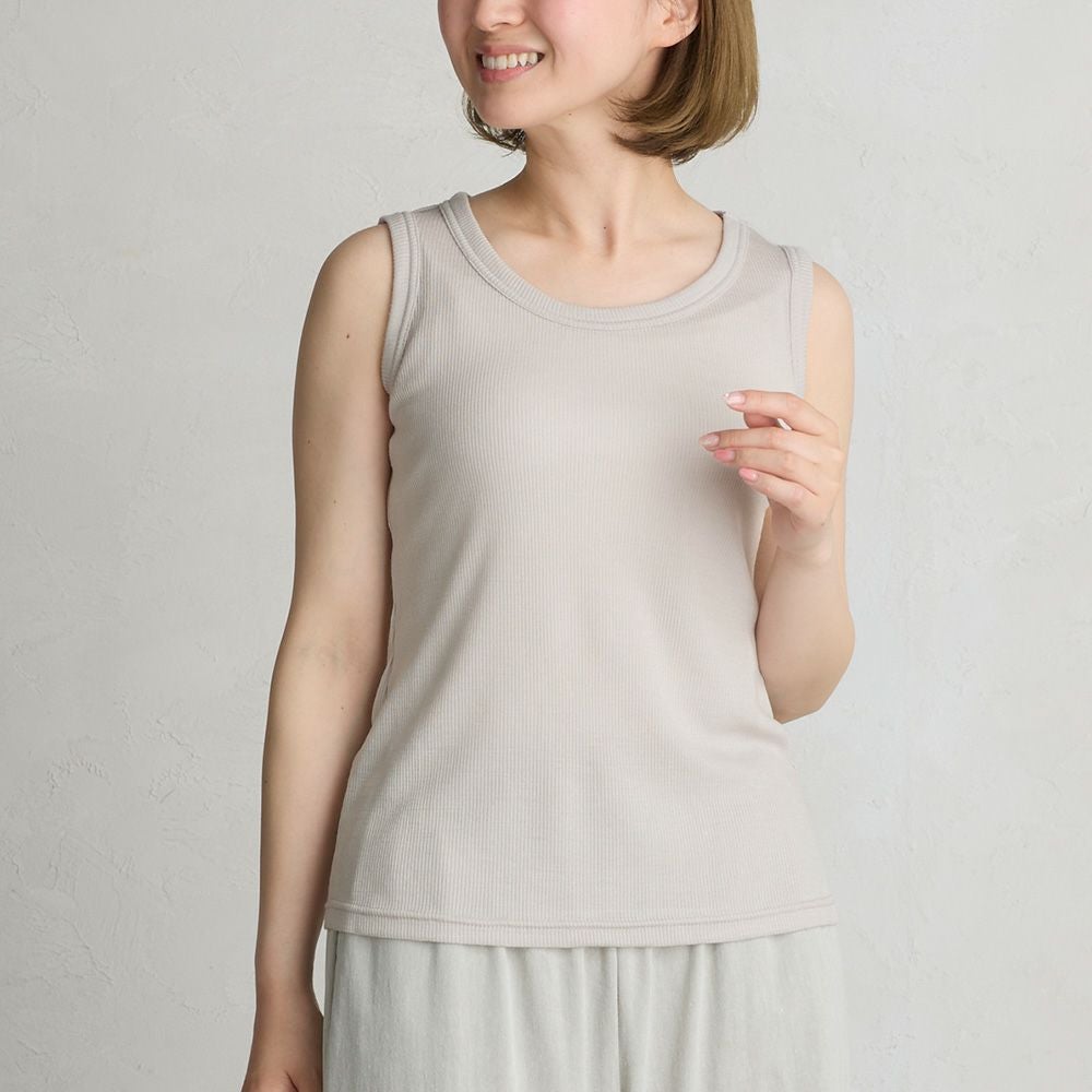 伸縮性抜群のリブ素材のメリノウール素材を使用した定番のタンクトップ。普段使いのインナーとしても。登山やアウトドア等のアクティブシーンにも。シーンを選ばずご利用頂ける定番アイテムです。襟ぐりや袖ぐりは太幅のバインダー始末で一枚でも使いやすいデザインに。