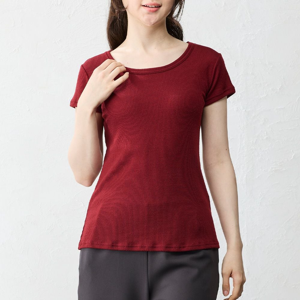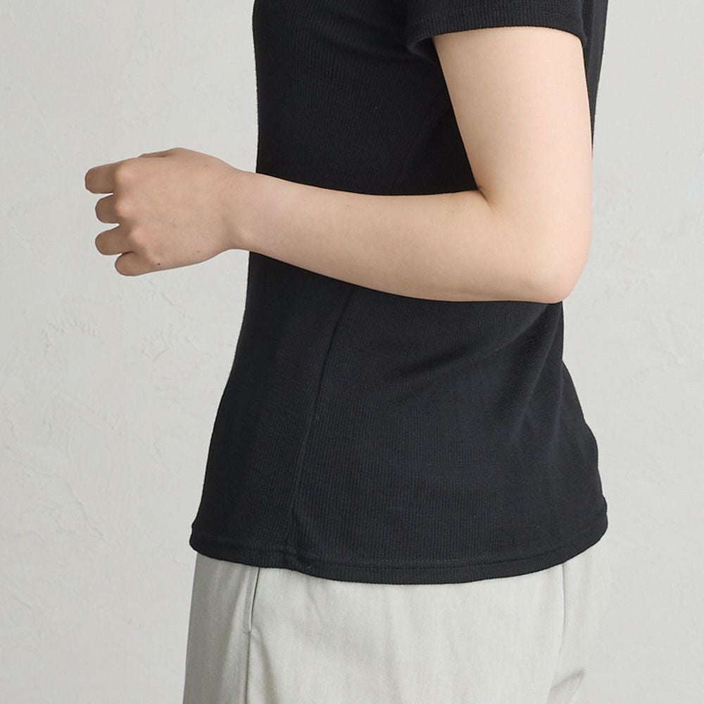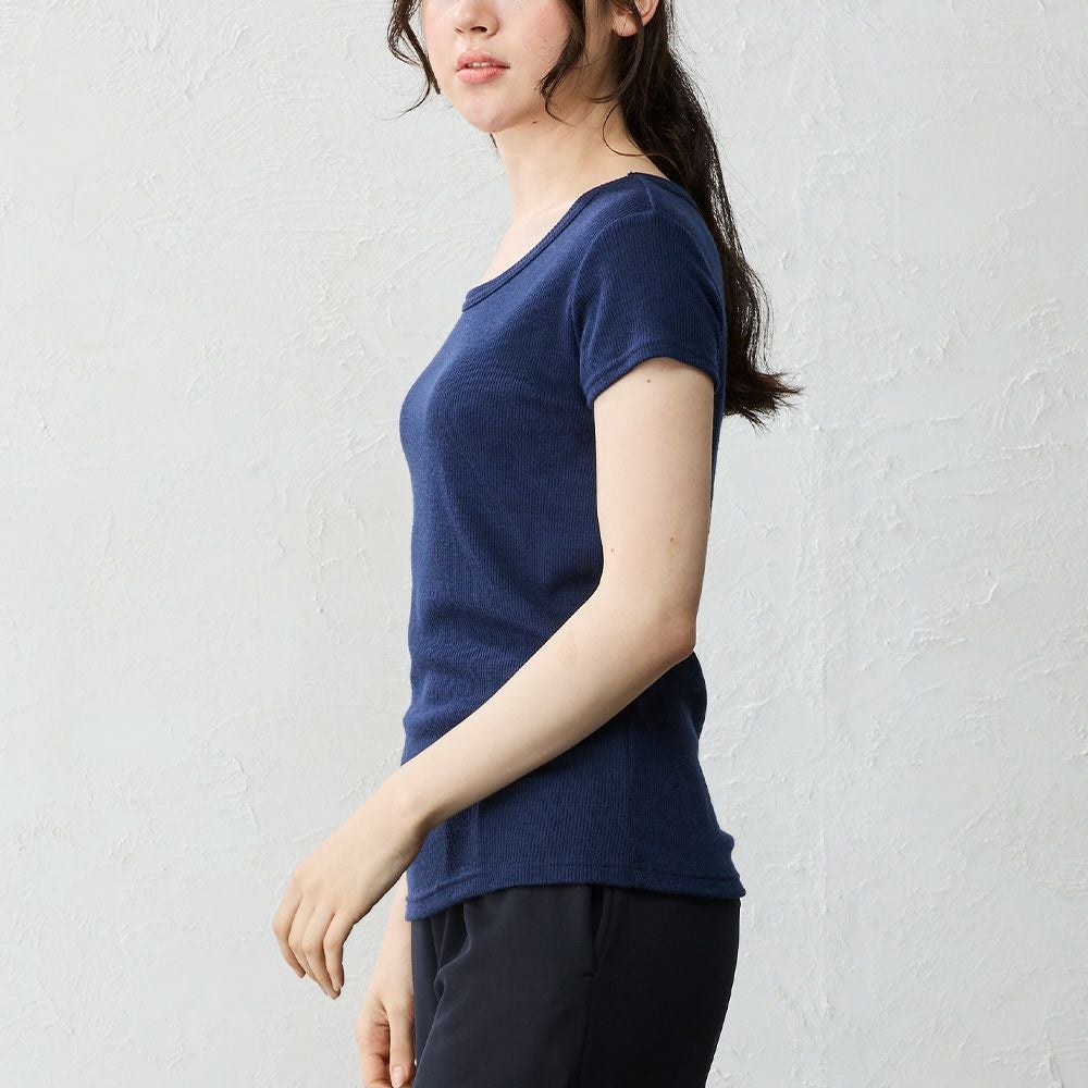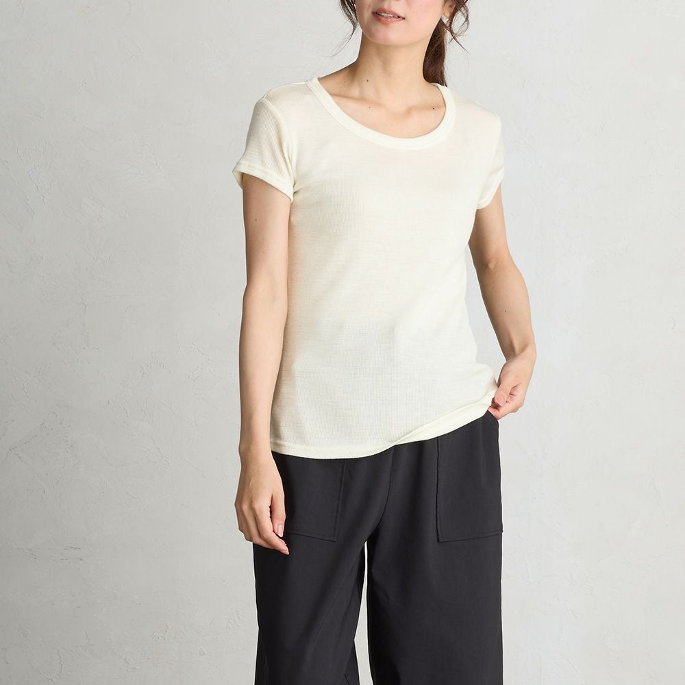 チクチクしない高品質なメリノウールを使用。フレンチ袖で通年着まわせる、シンプルなTシャツ。
