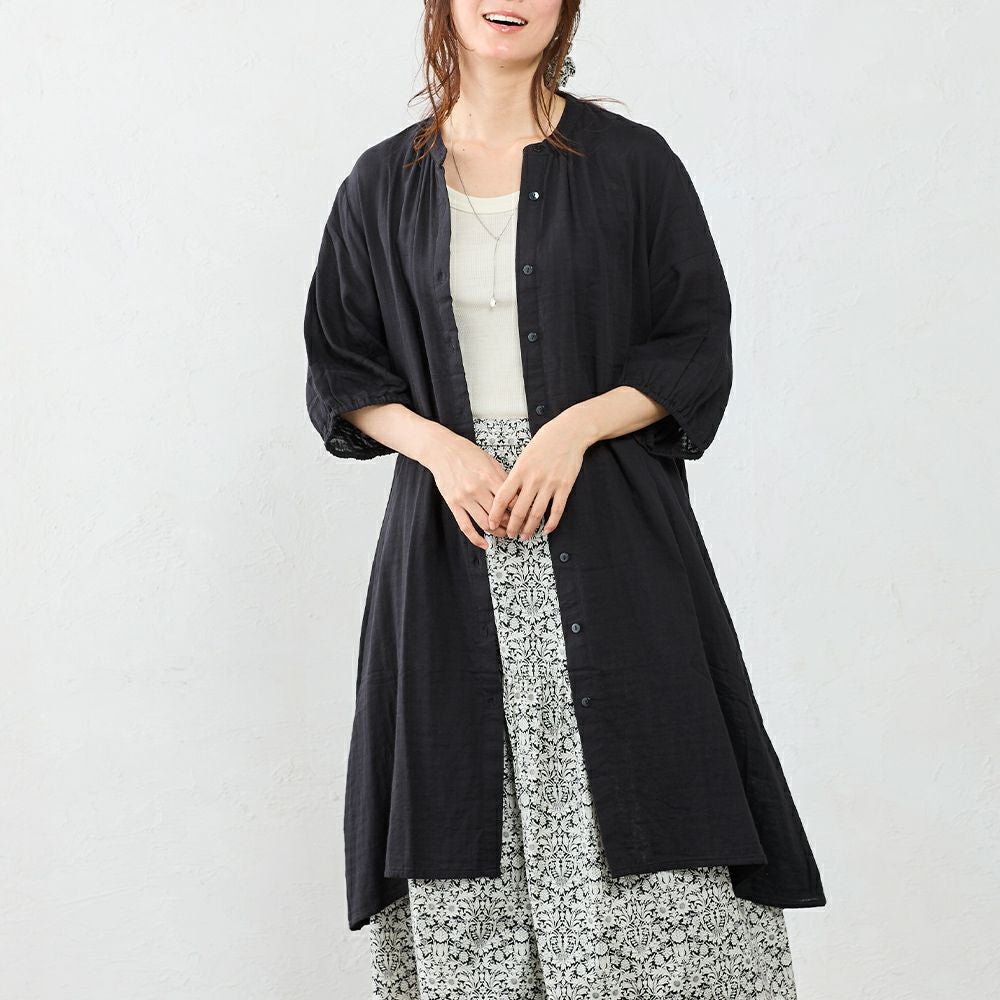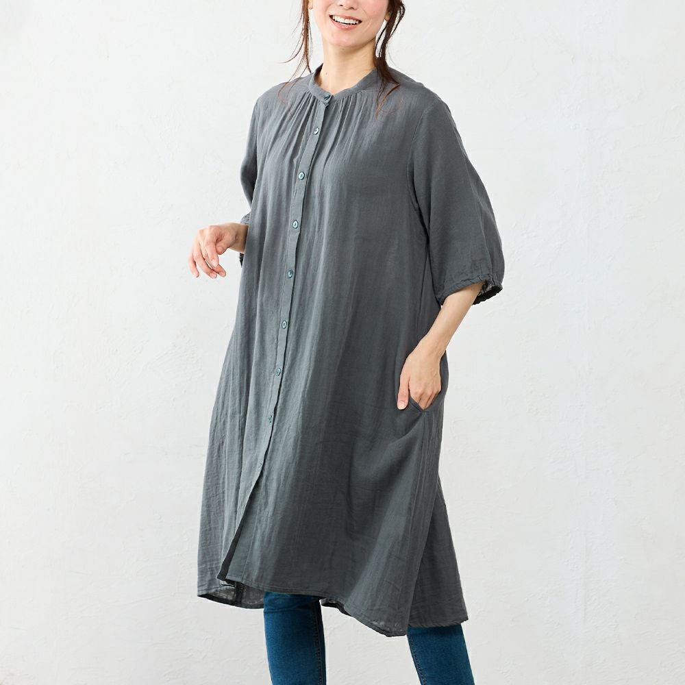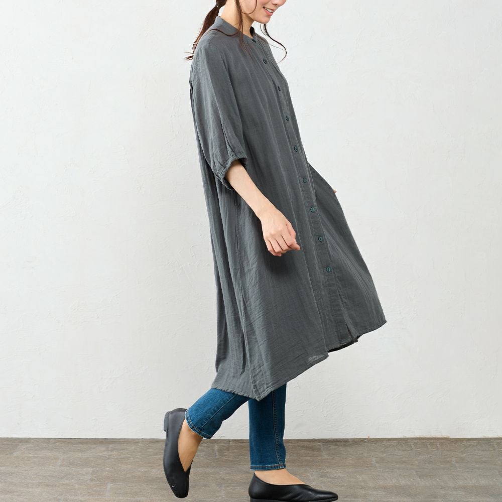 インド綿 軽くて柔らかいオーガニックコットンダブルガーゼのシャツワンピ インド製 オーガニックコットンダブルガーゼシャツワンピ