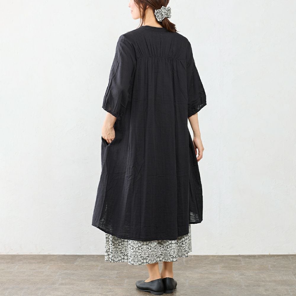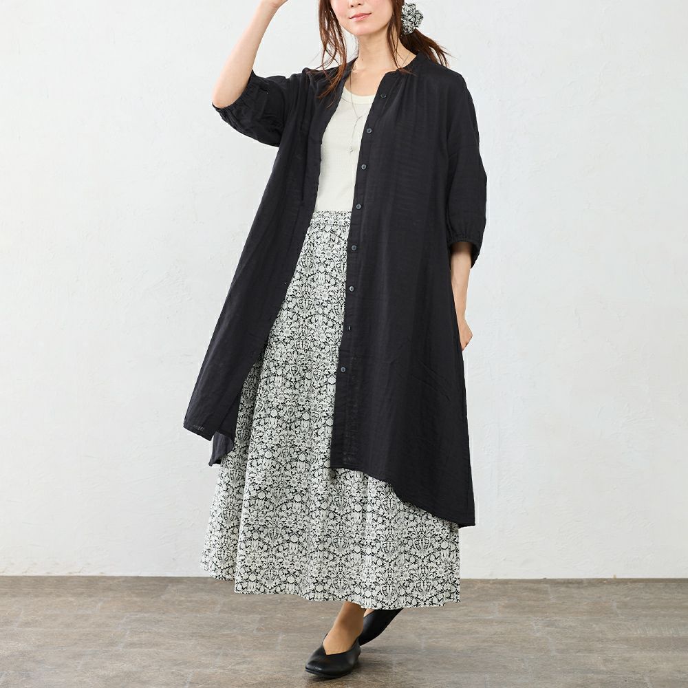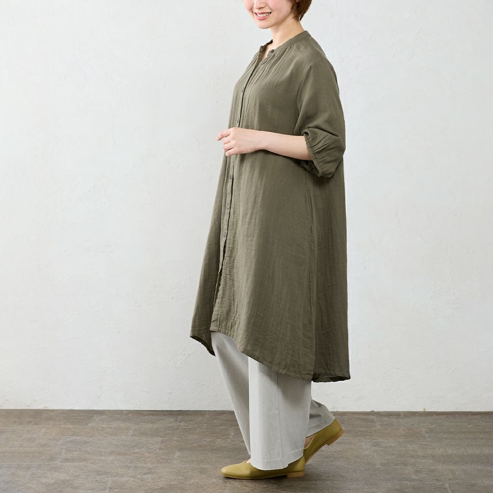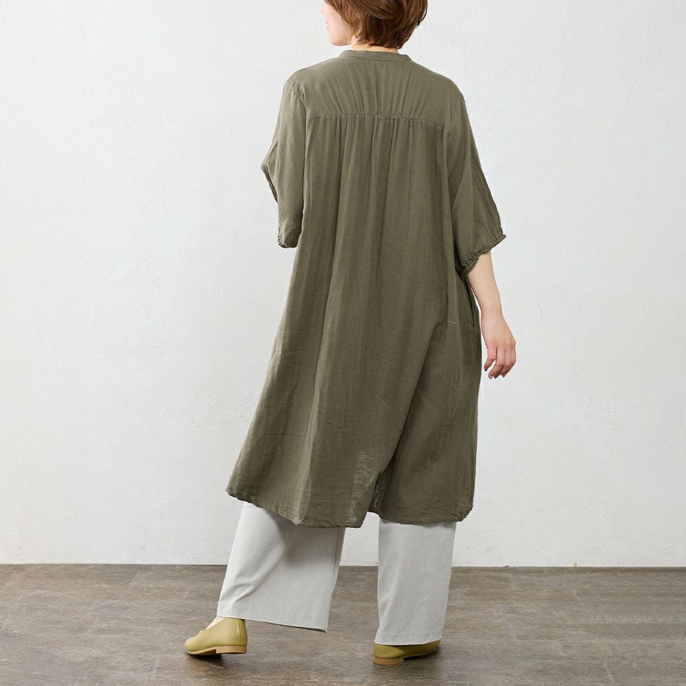 インド綿 軽くて柔らかいオーガニックコットンダブルガーゼのシャツワンピ インド製 オーガニックコットンダブルガーゼシャツワンピ