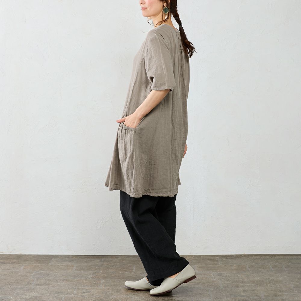 綿の世界的産地「インド」の綿を使用しインドで作られたチュニック。軽くて柔らかく肌触りの良いダブルガーゼはオーガニックコットンを使用。