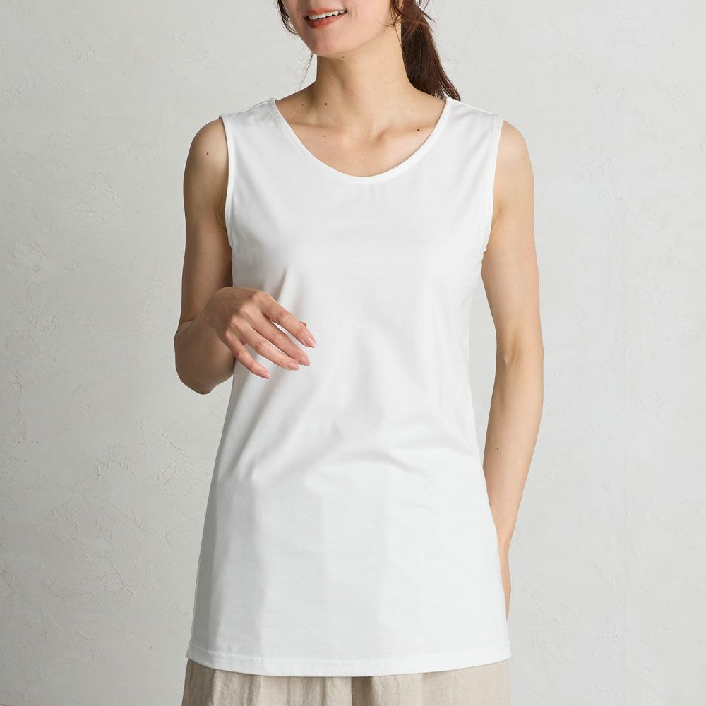 厳選されたオーガニックコットンを使用したベーシックタンクトップ。しっかりとした素材感でたくさんご着用頂いてもヘタらず長期間ご利用頂けます。 UVカット機能、接触冷感機能も兼ね備えた本物を知る女性のためのプレミアムタンクトップです。