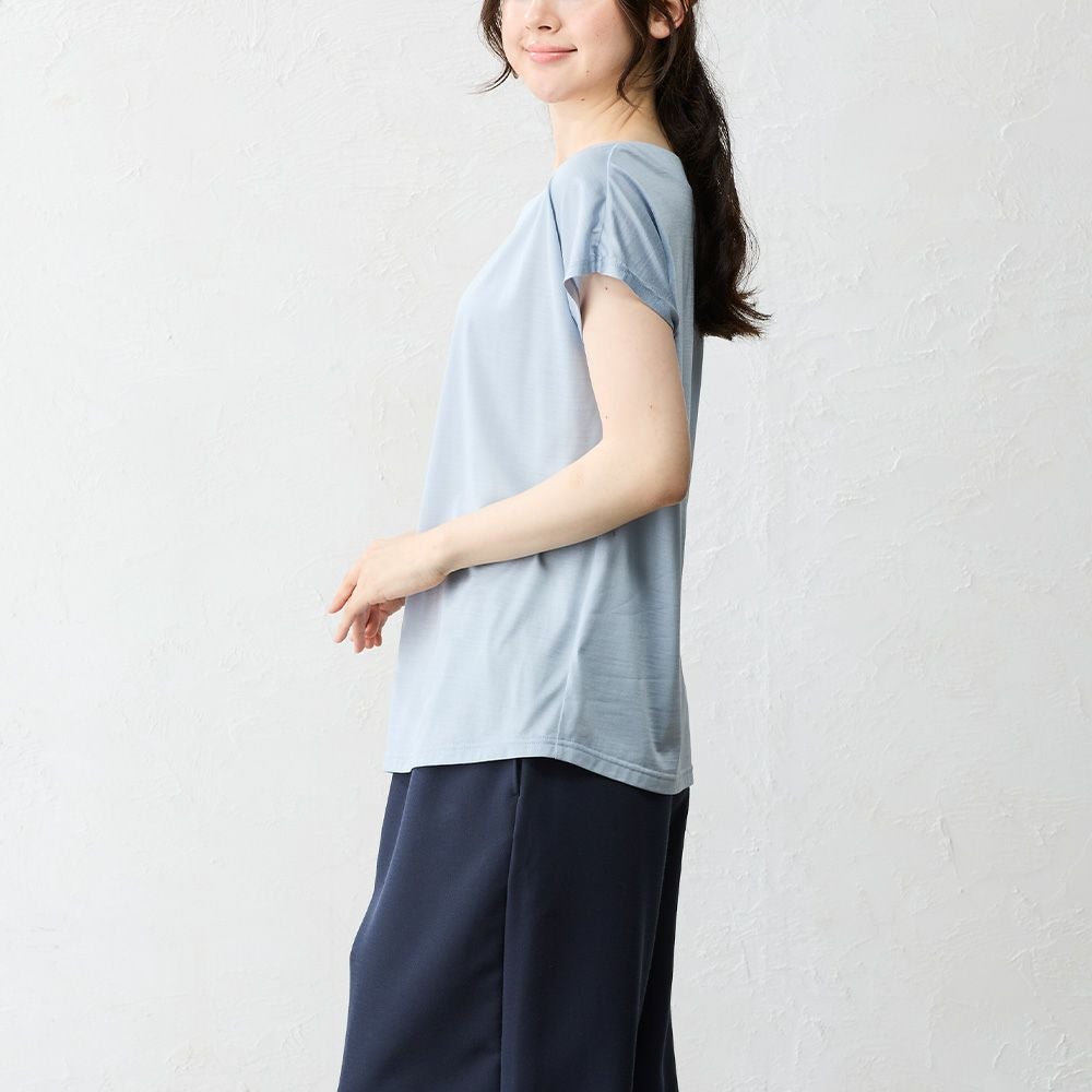 国産シルクを贅沢に使用したボートネックTシャツは、肌にやさしく寄り添う極上のなめらかさが魅力。