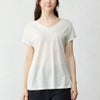 国産シルクを贅沢に使用したVネックTシャツは、肌にやさしく寄り添う極上のなめらかさが魅力。
