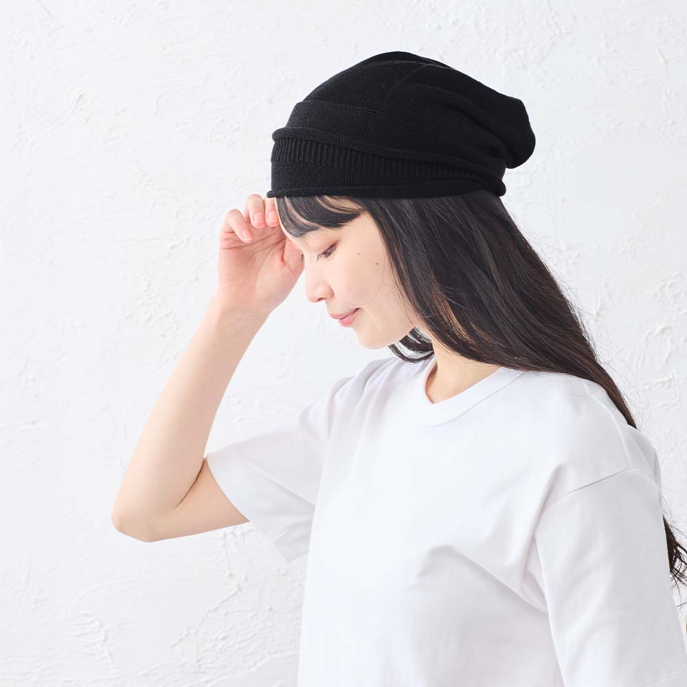 日常使いはもちろん、就寝時のケアやリラックスタイムにも。 やさしく包み込む被り心地で、デリケートな頭皮にも寄り添います。 シルクのなめらかさと無縫製のやさしさで、医療用帽子としてもご使用いただけます。