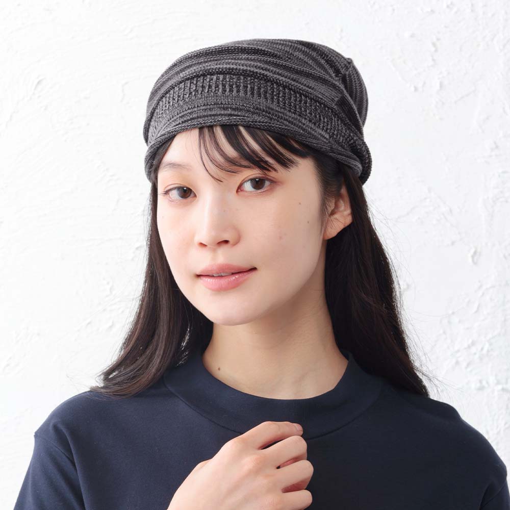人の肌に近いタンパク質からなるシルクは、摩擦を抑えながらやさしく包み込み、デリケートな頭皮や髪にも心地よく寄り添います。 さらに、ホールガーメントによる無縫製で編み立てることで、縫い目のないなめらかな仕上がりに。 ごろつきや締め付け感を抑え、日常使いから就寝時やリラックスタイムでもストレスなく着用いただけます。