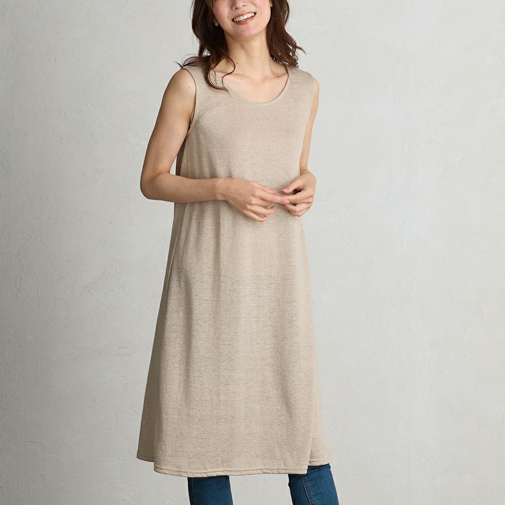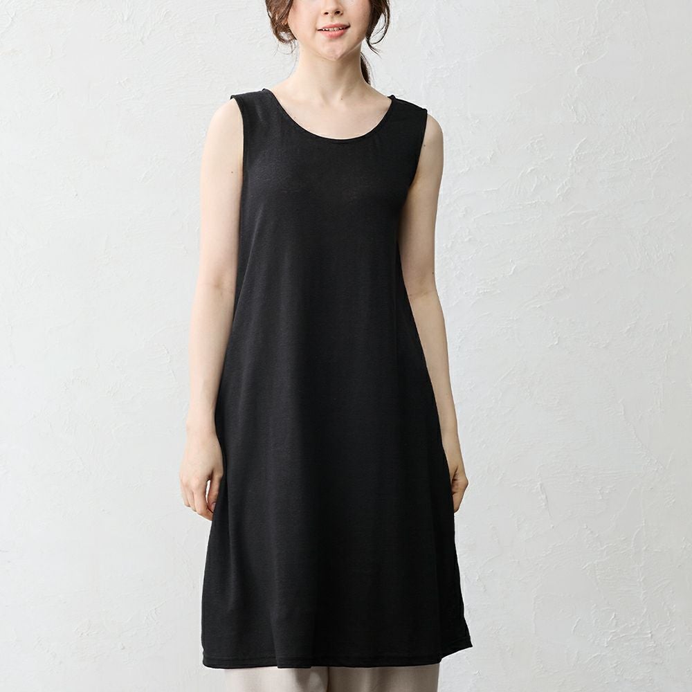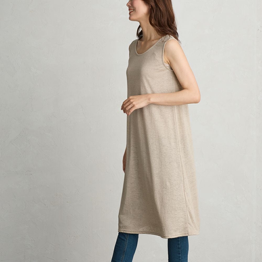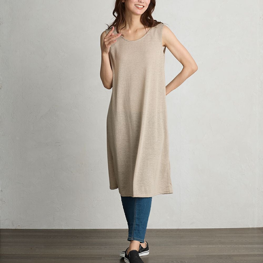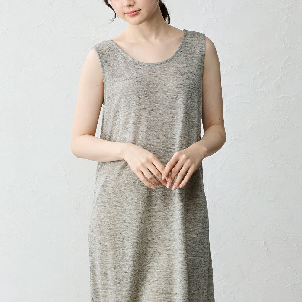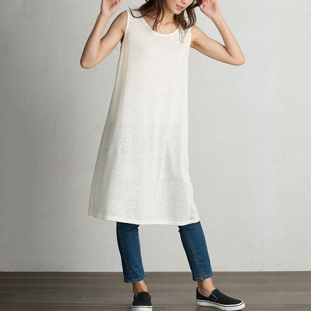 上質なリネンを使用したタンクトップワンピース。 透け感のあるワンピースや淡い色の浴衣のインナーなどペチコートとして、また部屋着としてもご着用いただけます。 用途問わず使える便利なノースリーブワンピースです。