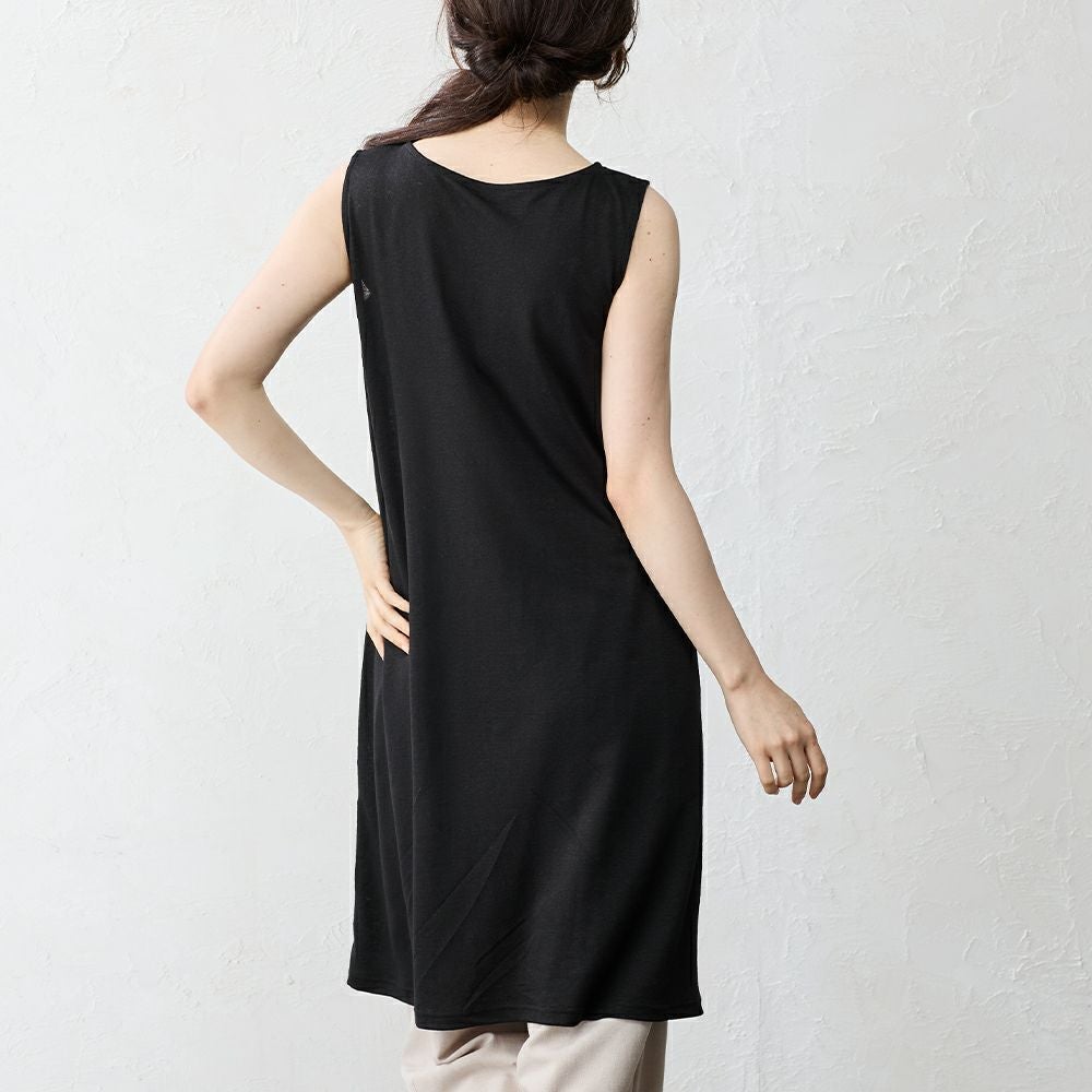 風通しがよく、吸水性・速乾性に優れたリネン100%の天竺素材で仕立てたインナーワンピース。 汗ばむ季節もムレにくく、肌にまとわりつかず、さらりとした着心地が一日中続きます。 天然リネンならではのシャリ感とやさしい肌ざわりが素肌に心地よく、インナーとしてはもちろん、ルームウェアやリラックスウェアにもぴったり。