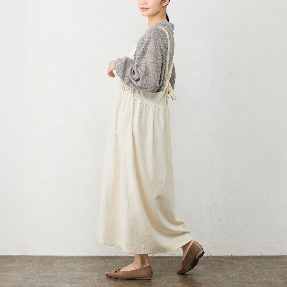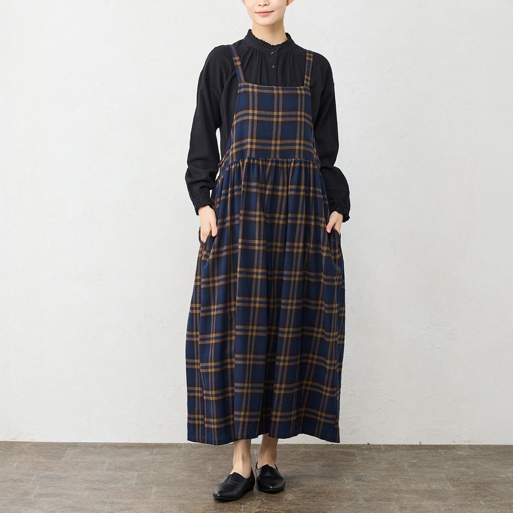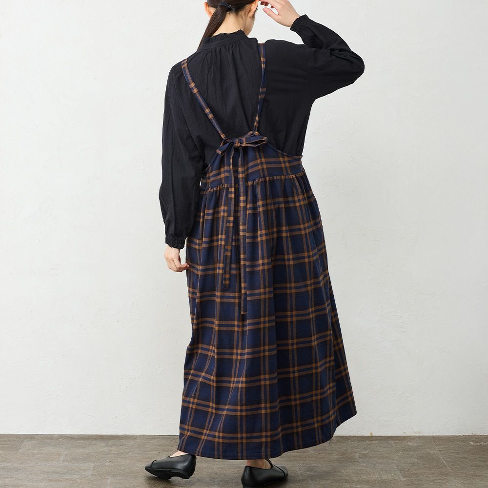 他の画像を見る Aナチュラル Bブラウン Cブラック Dネイビーチェック柄 送料無料 ナチュラルな素材感とふんわり揺れる大人のジャンパースカート コットンシルク エプロンジャンスカ カートに入れる お気に入りに登録する 当店特別価格 ¥ 12,400 税込
