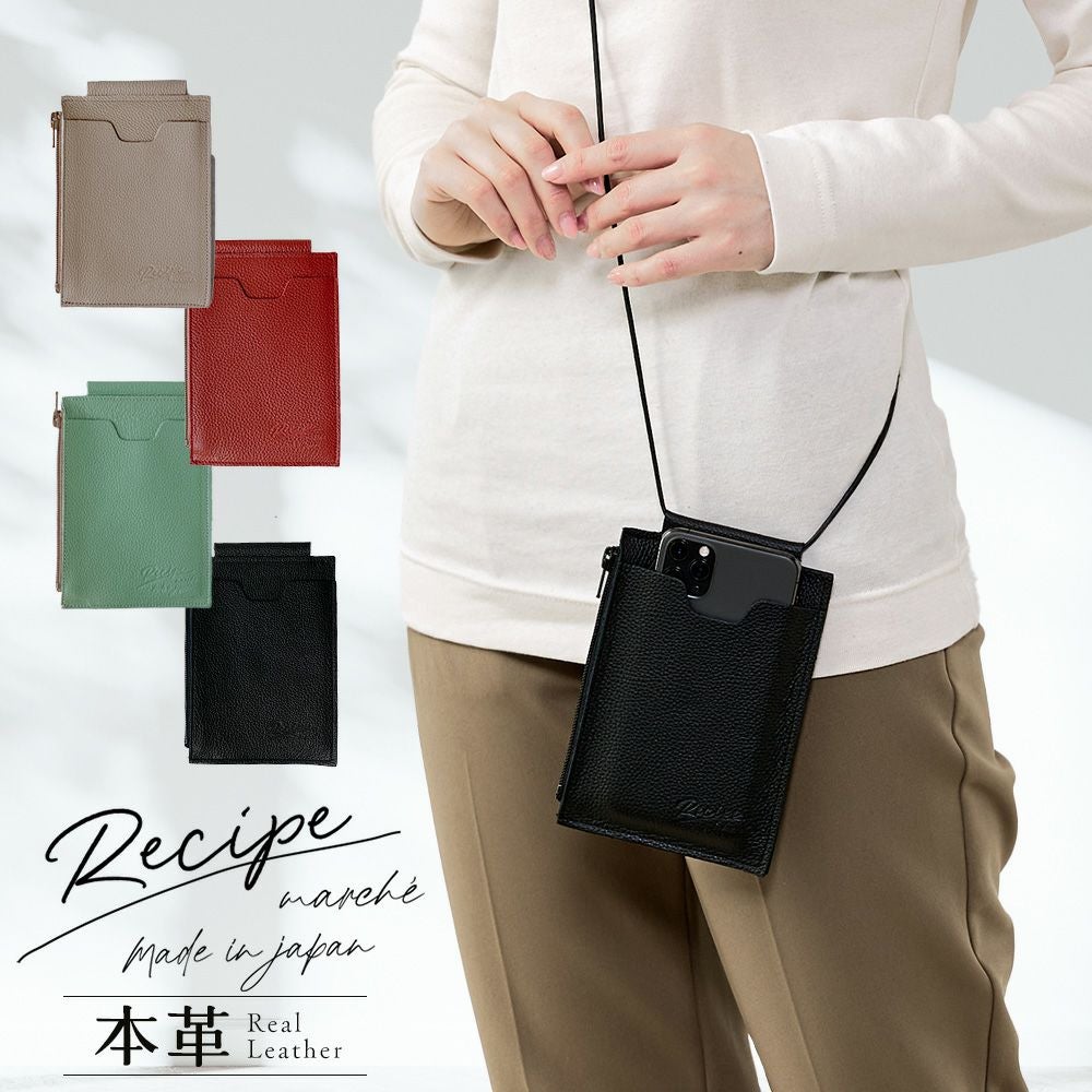 【recipe marche/レシピ マルシェ】本革 スマホショルダー