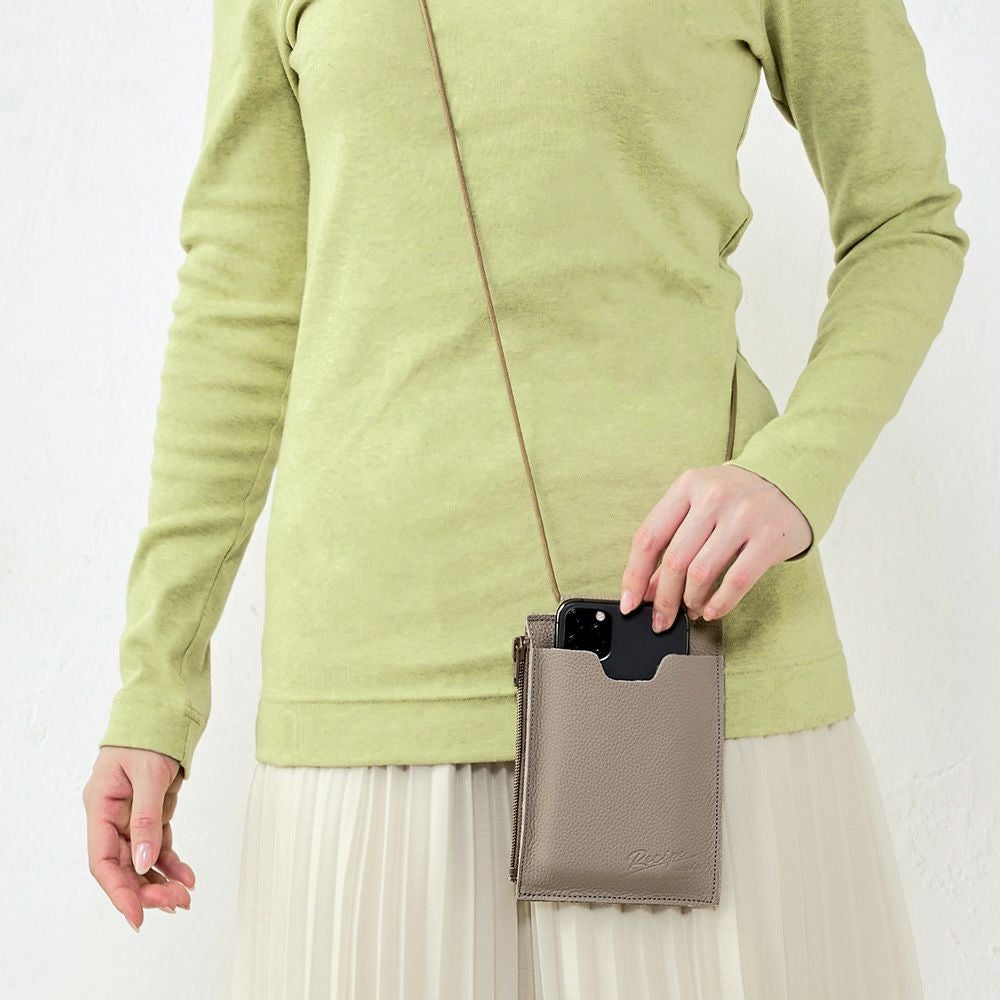 日本の靴職人が作るソフトレザーのファッション雑貨。柔らかく軽い、上質な本革スマホショルダーバッグ。