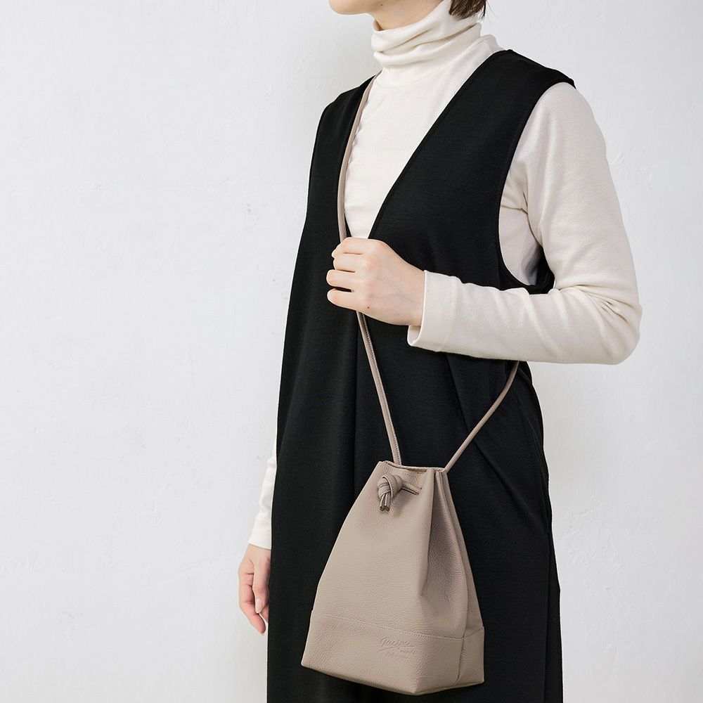 【recipe marche/レシピ マルシェ】本革 2way 巾着ショルダー B-20 キンチャクバッグ